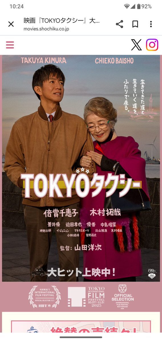 いい映画だったぁ🎬 倍賞千恵子さんとキムタクの演技力✨ 久しぶりに良い映画を見ることができた☺️ #映画TOKYOタクシー #TOKYOタクシー #倍賞千恵子 #木村拓哉 #山田洋次監督 x.com/tokyotaxi_movi…