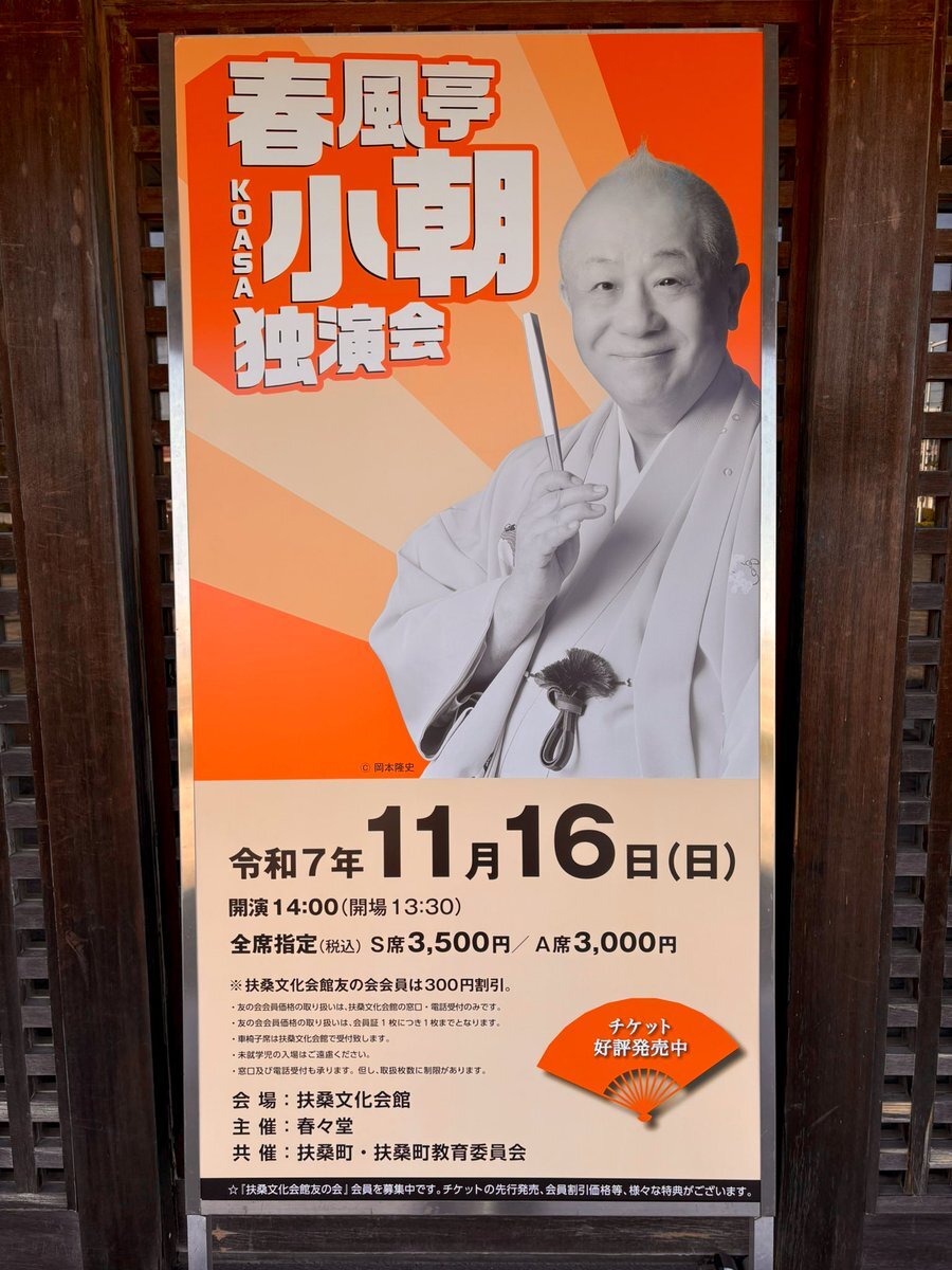 \いよいよ本日公演☀️/ 春風亭小朝独演会 開演14時〜 当日券の販売もごさいますので、ぜひ扶桑文化会館へお越しください✨✨✨ #春風亭小朝 #落語 #扶桑文化会館 pic.x.com/pO3GWBE8qD