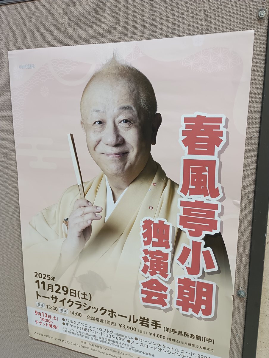 春風亭小朝 岩手公演 🎙━━━明日開催!━━━🎙 春風亭小朝 独演会 11月29日(土) トーサイクラシックホール岩手 (岩手県民会館)中ホール 🎫当日券あり¥4,000(税込) 13:00~会場窓口にて販売します ご来場お待ちしております! north-road.co.jp/detail/detail.… #春風亭小朝 #独演会 #落語 #らくご pic.x.com/gHylyuzTQk