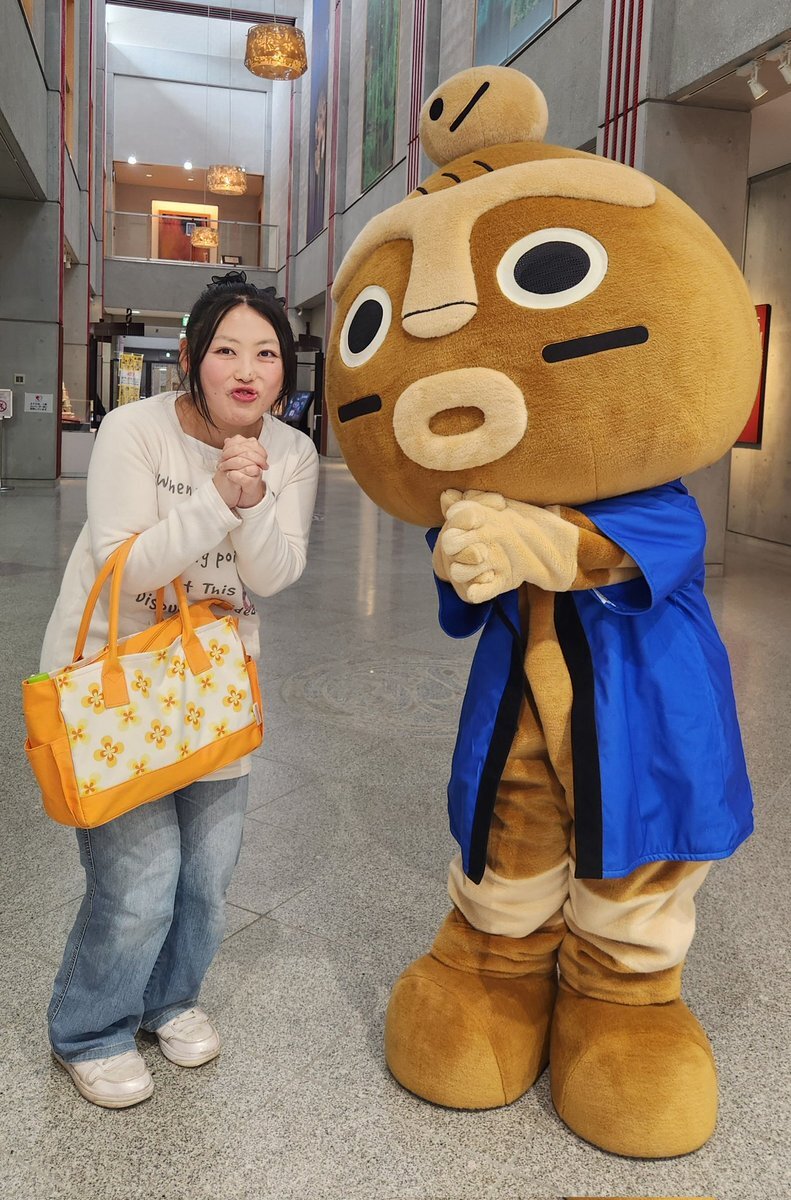 恥ずかしがり屋のおっしーと室長は、いのるんちゃんに写真撮影をお願いできず、後ろ姿と記念撮影おっしー🤣今度Canva で合成写真作ってもらうおっしー🤗 #是川縄文館 #ゆるキャラいのるん #合掌土偶 pic.x.com/cKyALF04Xs