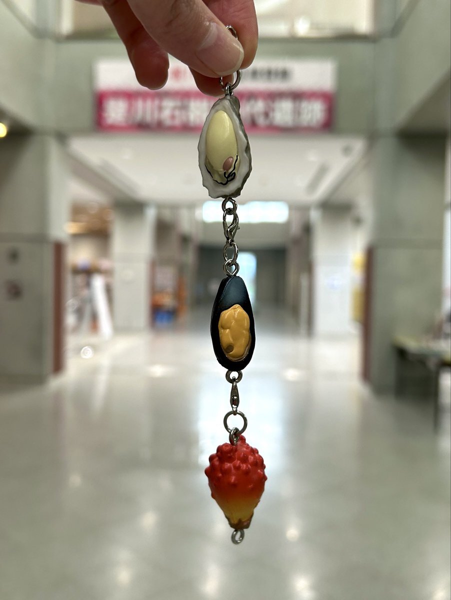 夏の特別展「貝へのあこがれ」にあわせて販売したガチャガチャ『牡蠣棚チャーム2』 実はまだまだ販売中だるん♪ チャームをつなげたら牡蠣棚がつくれるるん🦪 縄文館にきたら回してみてるん♪ #是川縄文館 #ガチャガチャ #ガチャポン pic.x.com/YC7DyuQfoE