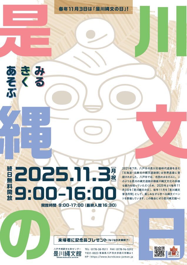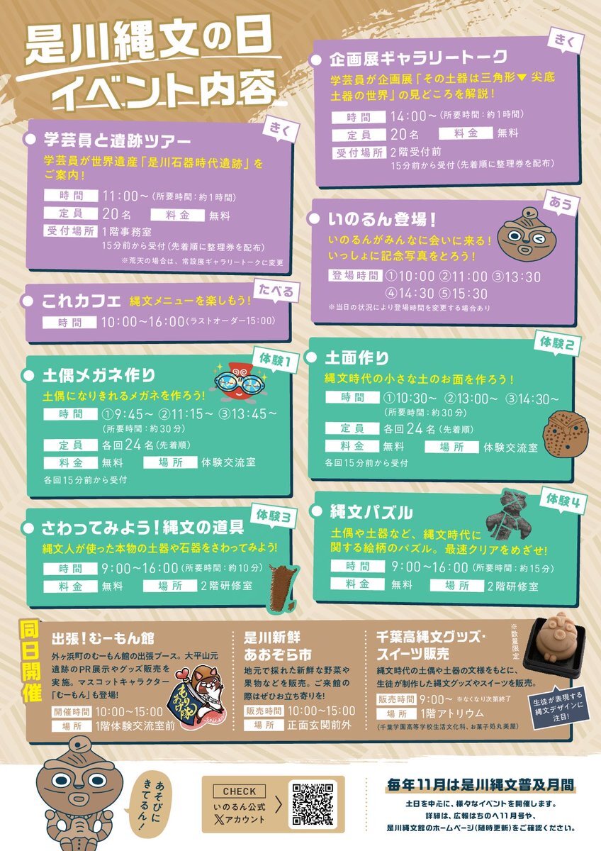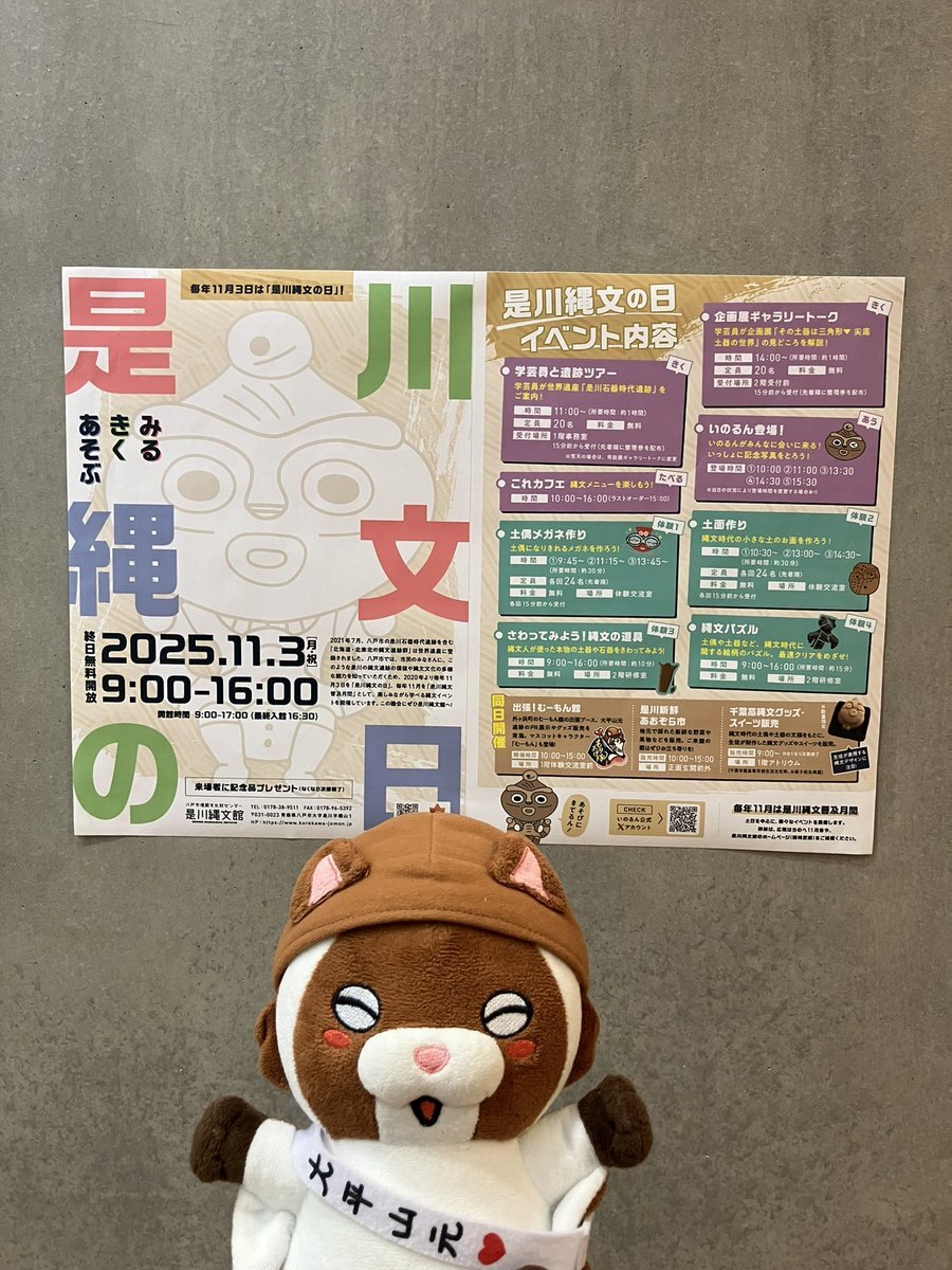 【11月3日は是川縄文の日】 今年もこの日がやってくるるん! 是川縄文の日は観覧無料! 縄文体験や遺跡ツアーなど、縄文づくしの1日だるん♪ いのるんもみんなに会いに行くるん✨ ご来館まってるるん♪ イベント内容はHPへ▶︎ korekawa-jomon.jp/events/event/%… #是川縄文館 #縄文 #世界遺産 pic.x.com/X5j1pbscBH