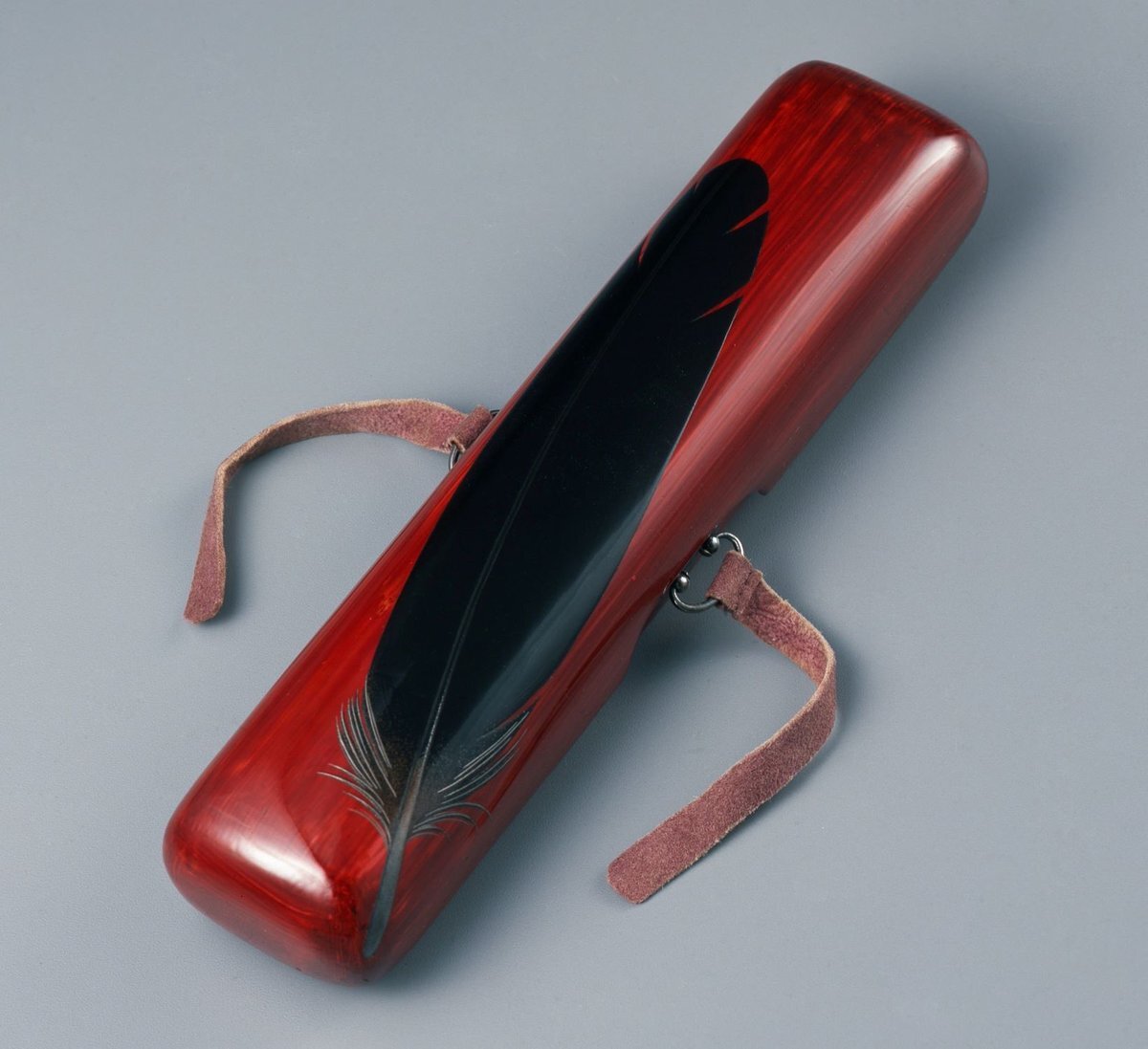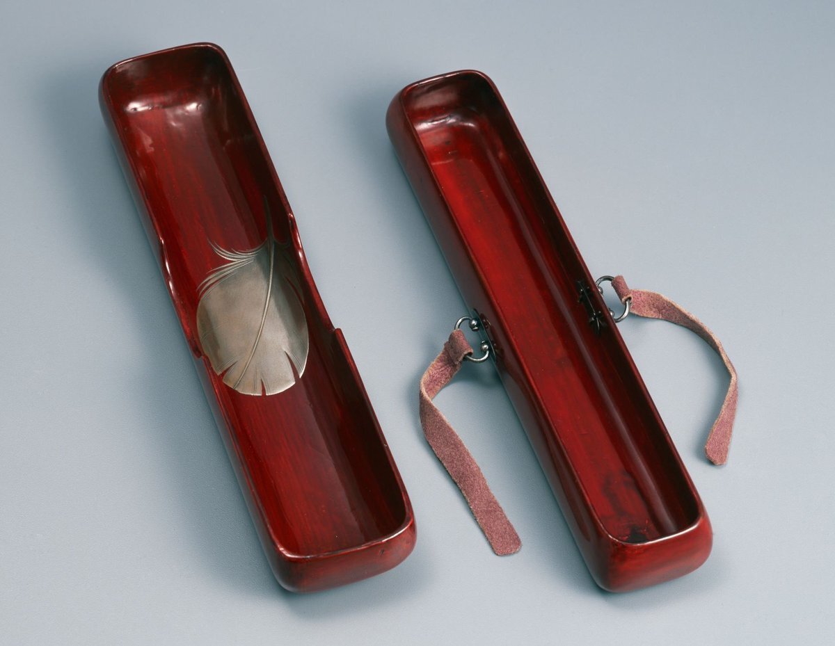 #是真展 ✨ 📢本日も16時迄開室❗️ ⚠️31日迄❗️ 🔎単眼鏡推奨 🚶道に迷ったらお電話を \ 羽根蒔絵文箱 柴田是真作 江戸時代 19世紀 蓋甲に一枚の鶴の黒い羽根。蓋見返しには白い鶴の羽根を銀高蒔絵であらわす。 実は、本作は私の推し作品👍 紫の革緒と銀製の鐶もお洒落✨ #東京黎明AR #中野区 pic.x.com/pYvNVZjFKT