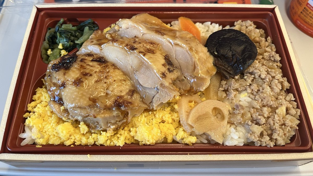 ちなみに帰りは飛行機じゃなくて新幹線です。寄るところあるので。 んで晩御飯は鶏づくし弁当。 ・・・そうです。野原ひろしの昼メシの流儀のアニメに影響されたわけですね🗿 テンション上がるぜ〜 #昼メシの流儀 ・・・ならぬ #晩メシの流儀 pic.x.com/isOcHnVPUN