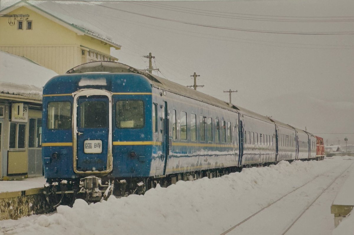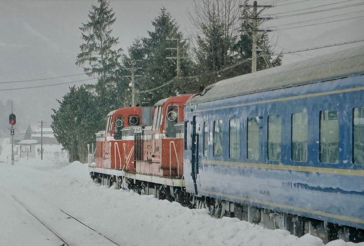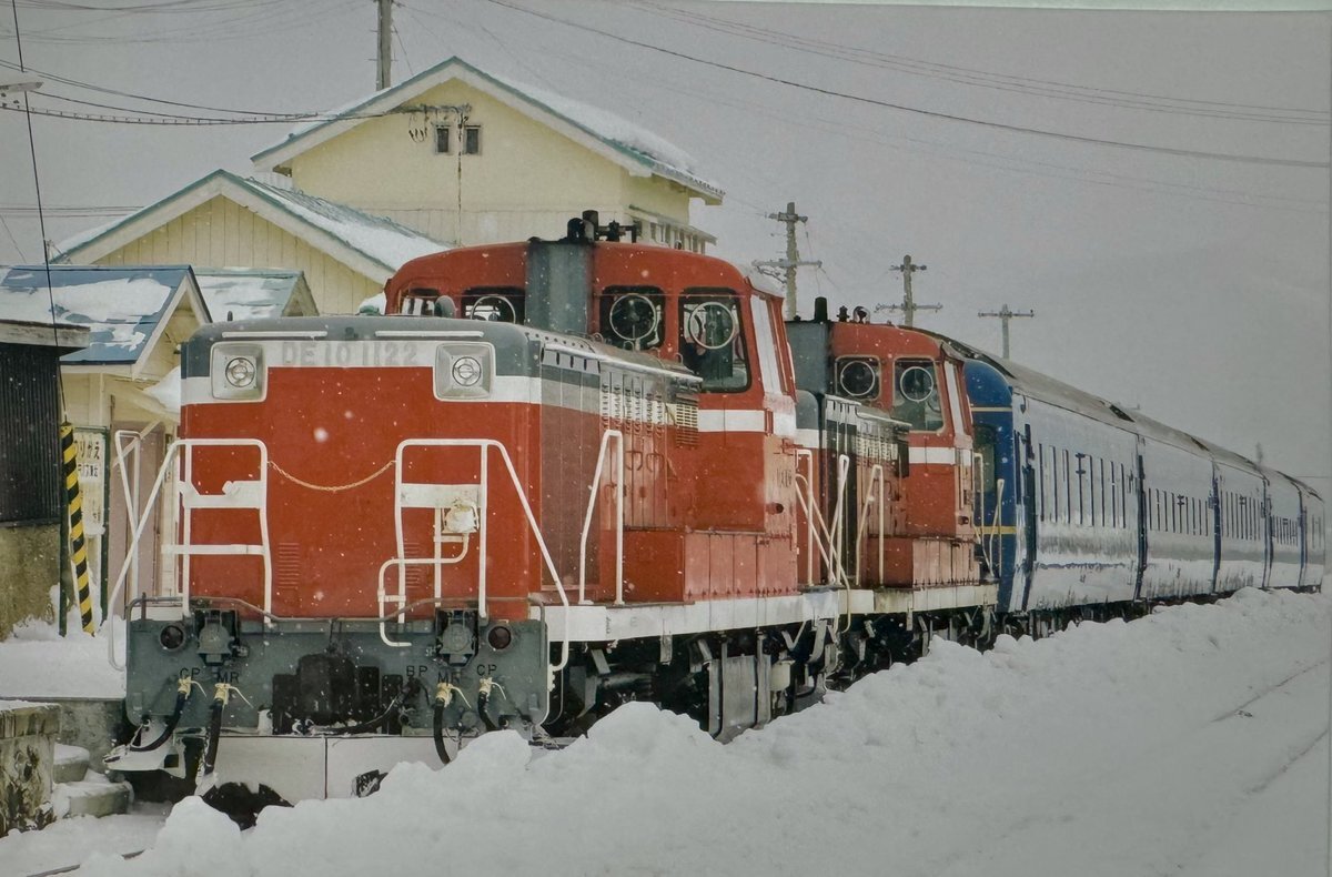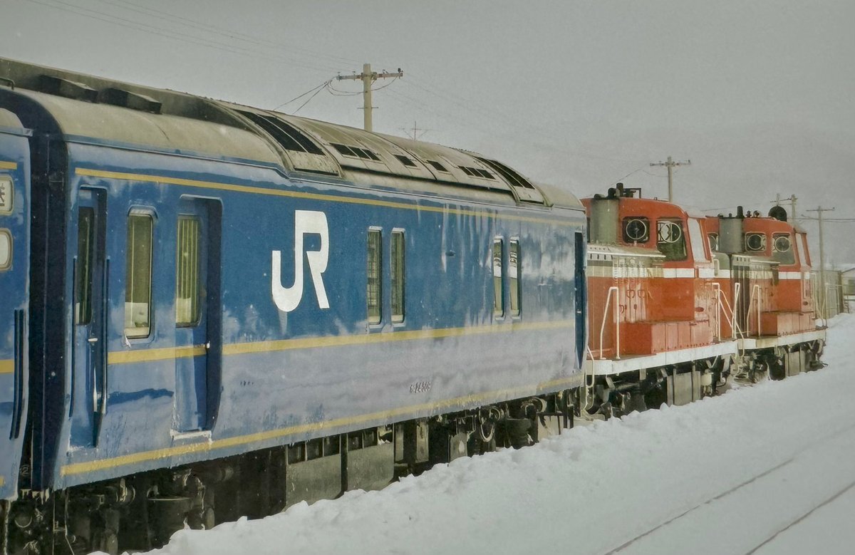 #暑いので涼しげな画像を貼る 懐かしの⛷️スキー臨 《寝台急行💫ホワイトスノー安比号》 #DE10重連 1109号機と1122号機 #24系25形 荒屋新町駅でデーテンツインズを機回し😅 #花輪線 に臨客の入線は、珍しい。 これも最初で最後の撮影になりました。 ☃️1999年1月🤔📷 pic.x.com/sh1FN4lo5E