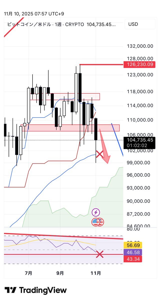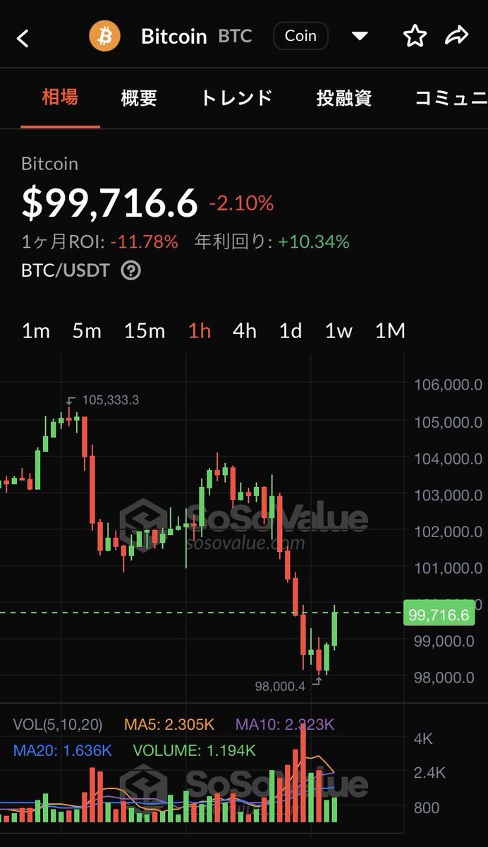 $BTC 10万ドル割れたカモ。 上がれば売りだった…カモ🫩 Xで色んな人が、 『バブルが来る!』『アルトシーズンが来る!』って言ってたカモ🌷🌻🥀👃 #暗号資産 #BTC #暗号通貨 #仮想通貨 pic.x.com/iqailwmtkf x.com/btcsuixrp8888/…