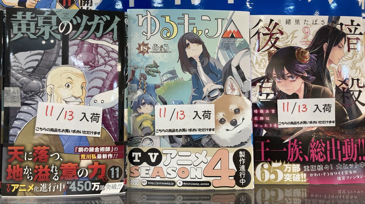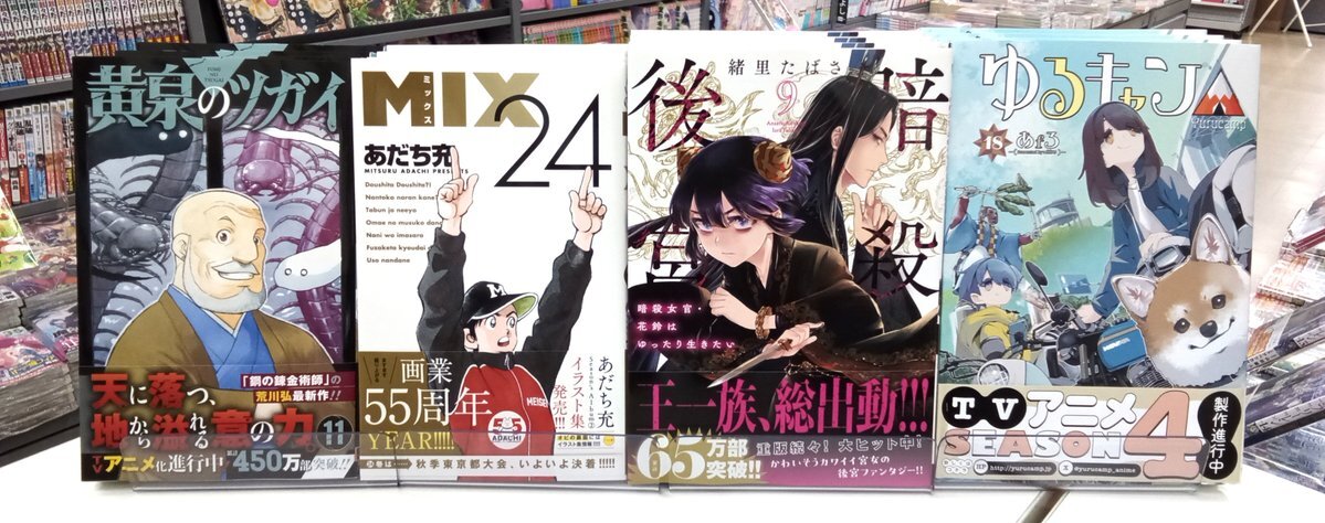 📚本日発売📚 ✨新刊コミックスPickup✨ #黄泉のツガイ 11巻 #MIX 24巻 #ゆるキャン 18巻 #暗殺後宮 9巻 #出会って5秒でバトル 29巻 #星霜の心理士 1巻 ご来店お待ちしております😆 #スクウェア・エニックス #小学館 #芳文社 pic.x.com/6trsqqiveI