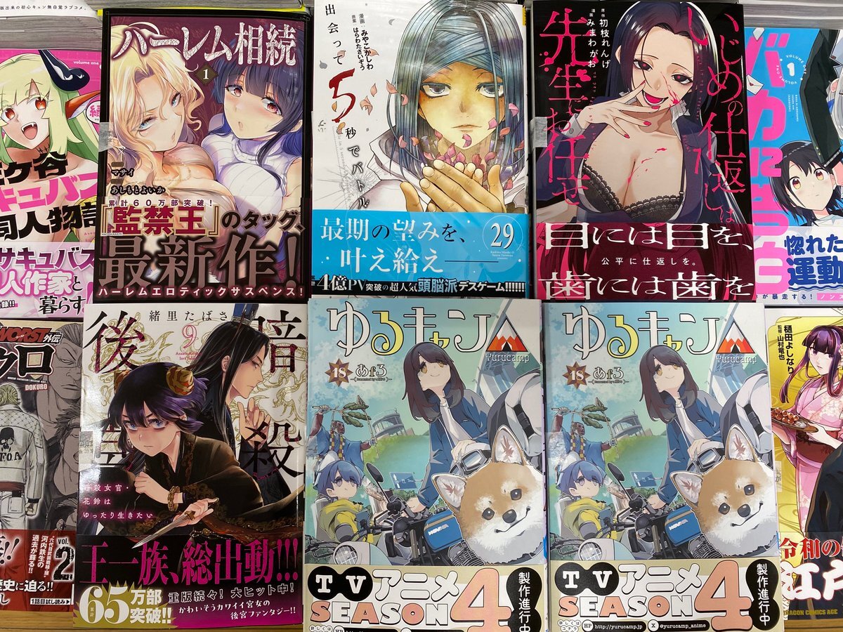 本日の入荷です☺️ #ゆるキャン△ 18巻 #暗殺後宮 9巻 #出会って5秒でバトル 29巻 #いじめの仕返しは先生にお任せ 1巻 #ハーレム相続 1巻 #ウリッコ 1巻 他 皆様のご来店お待ちしております🫶 #TSUTAYA岡富店 pic.x.com/qc3oKcDcKs