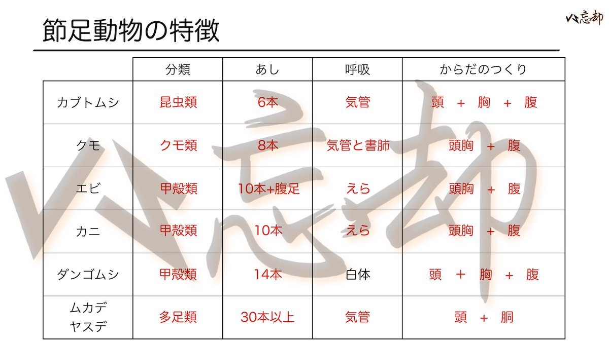 <動物⑥>節足動物の特徴 から1問 クモのあしの数は何本ですか。 <選択肢> ①6本 ②10本 ③8本 ④14本 ⑤16本 ▼解答・解説動画▼ 本日15:30頃にLINE公式アカウントで配信中! 解説画像は昨日の問題だよ!😊 #中学受験 #暗記 #理科 pic.x.com/yQlCgppipO