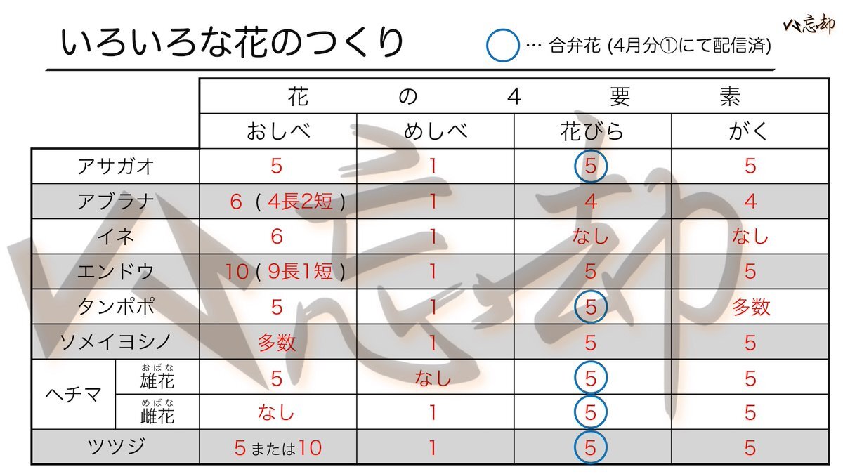 <植物④>花のつくり から1問 アブラナのおしべの数は何本ですか。 <選択肢> ①8本 ②10本 ③6本 ④5本 ▼解答・解説動画▼ 本日15:30頃にLINE公式アカウントで配信中! 解説画像は昨日の問題だよ!😊 #中学受験 #暗記 #理科 pic.x.com/LSHLaeDE8V