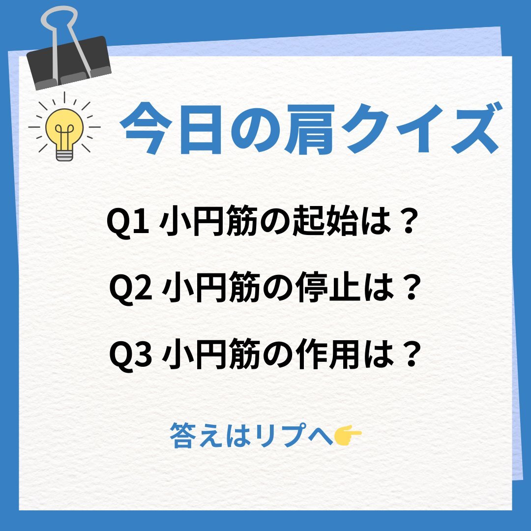 #今日の肩クイズ|小円筋 保存して寝る前に3分チェック🧠 Q1 小円筋の起始は? → Q2 小円筋の停止は? → Q3 小円筋の支配神経は? → Q4 腱板のうち、外旋に強く関与する2筋は? A. 棘上筋 B. 棘下筋 C. 小円筋 D. 三角筋中部 E. 肩甲下筋 → 答えはリプへ👉 #暗記法 #解剖学 #小円筋 # pic.x.com/uMnnsKZEUv