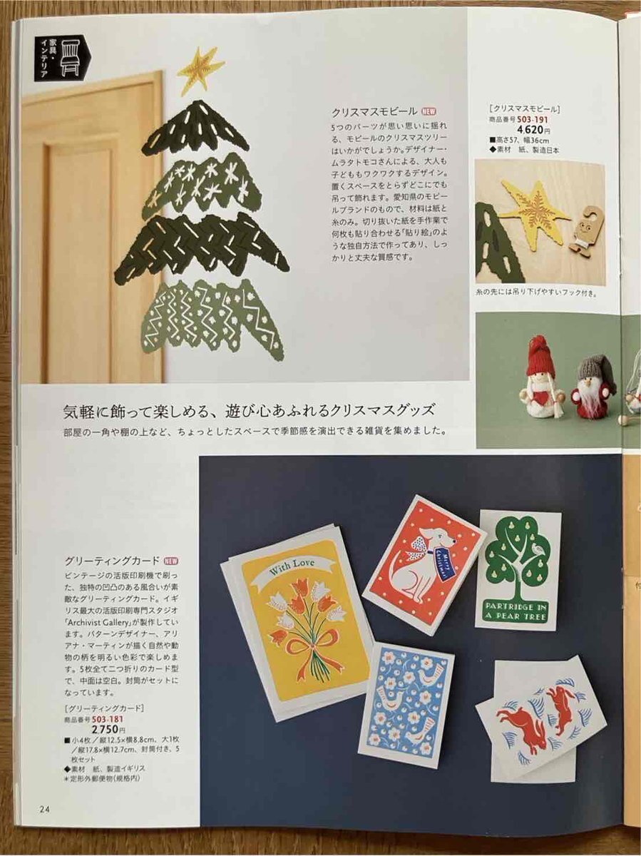 【掲載のお知らせ】 雑誌『暮しの手帖』のグリーンショップさんが発行するカタログの2025年冬号に『クリスマスモビール』を掲載いただきました。 #暮しの手帖 は小さい頃から愛読しており、今の活動につながることもたくさん学ばせていただいた雑誌なので掲載いただけたことを大変光栄に思います。 pic.x.com/dZvOveb2ZB