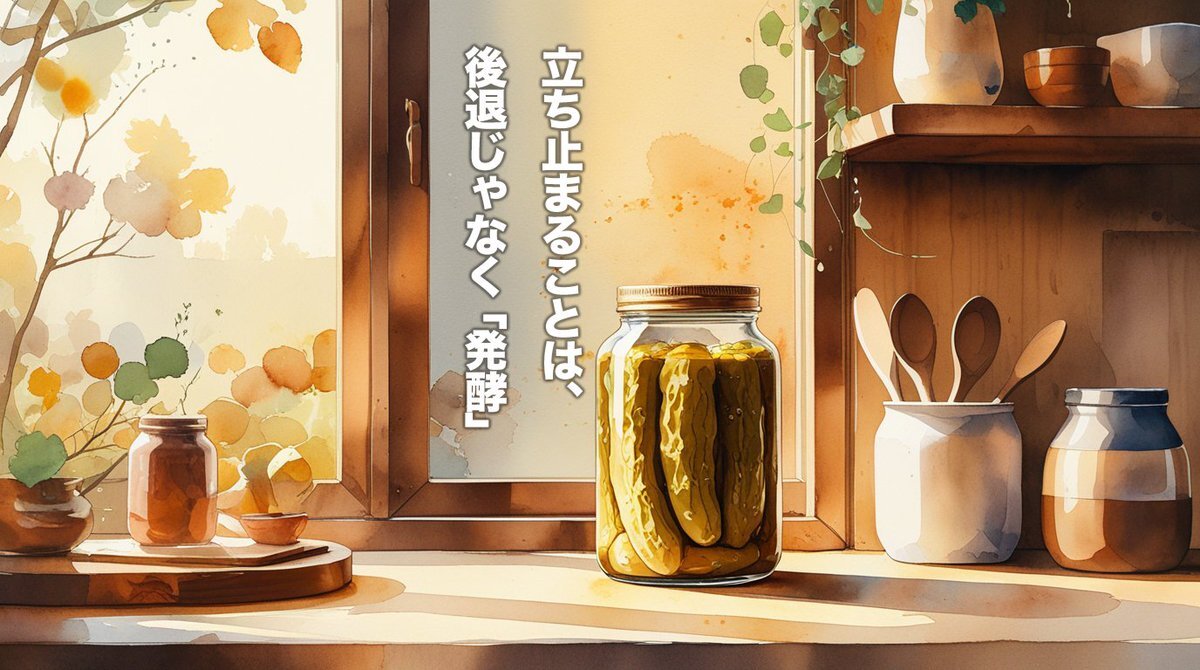 Fermentation, not failure. 立ち止まることは後退じゃない。 静けさの中で、人はゆっくり熟していく。 #ぬるめ哲学 #softphilosophy #LifePhilosophy #静かな成長 #発酵の哲学 #暮らしの温度 pic.x.com/37ko7VTRRa
