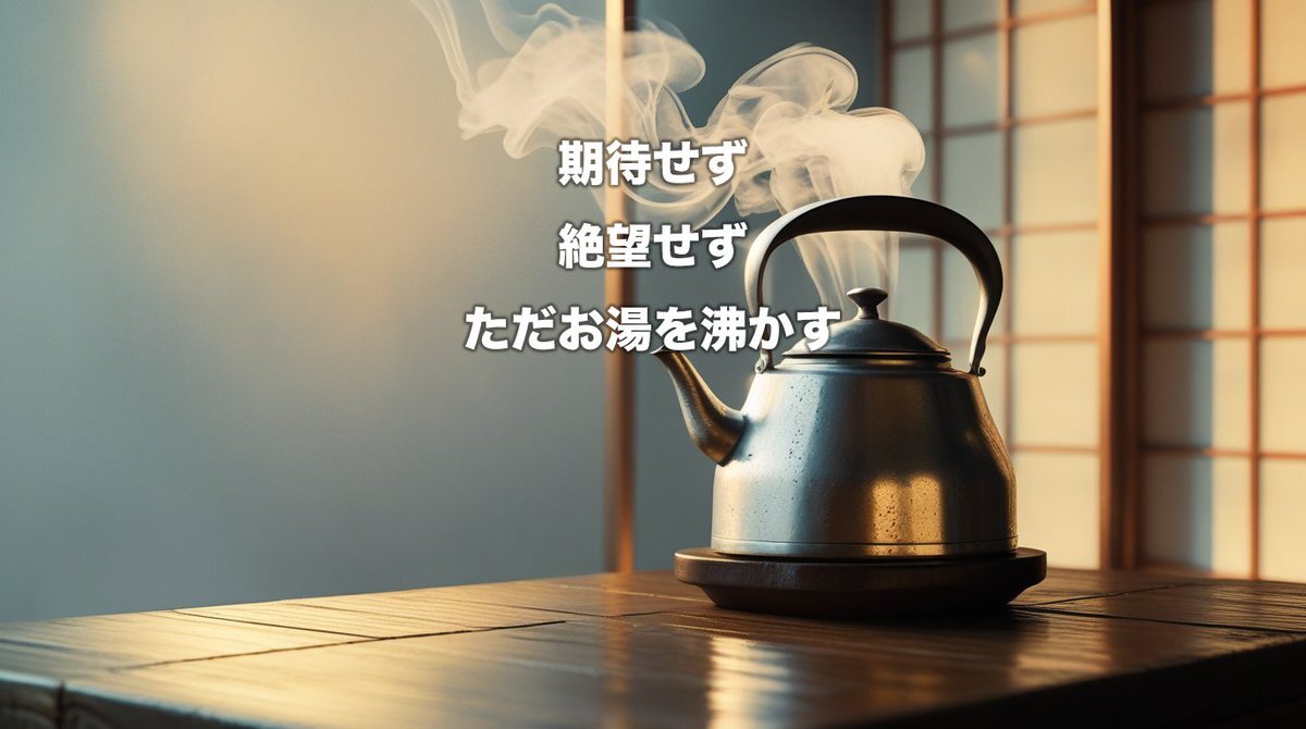 Hope less, despair less. Just boil the water. 期待も絶望もいらない。 今日をあたため直すだけで、人生は続く。 #ぬるめ哲学 #softphilosophy #LifePhilosophy #静かな時間 #暮らしの温度 #ぬるく生きる pic.x.com/Y55sTW734I