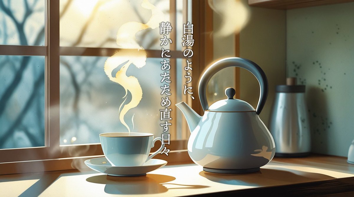 Warm yourself gently. 冷めた心を、白湯のようにあたため直す。 焦らず、比べず、今日をゆっくり溶かしていく。 #ぬるめ哲学 #softphilosophy #LifePhilosophy #静かな回復 #暮らしの温度 #白湯の哲学 pic.x.com/OJtmtz2QcV