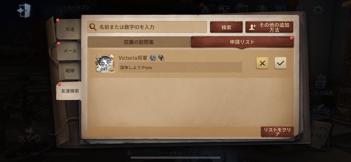 論争したいなら発禁相手にフレ申じゃなくて直接DMしてこい。 お前が俺のこと見つけやすいようにお前のアカウント名エゴサすれば出るようにしてやってんねん。 #第五人格 #identityV #暴言厨 #イキリキッズ #Victoria将軍 pic.x.com/g1FJpqmy1N