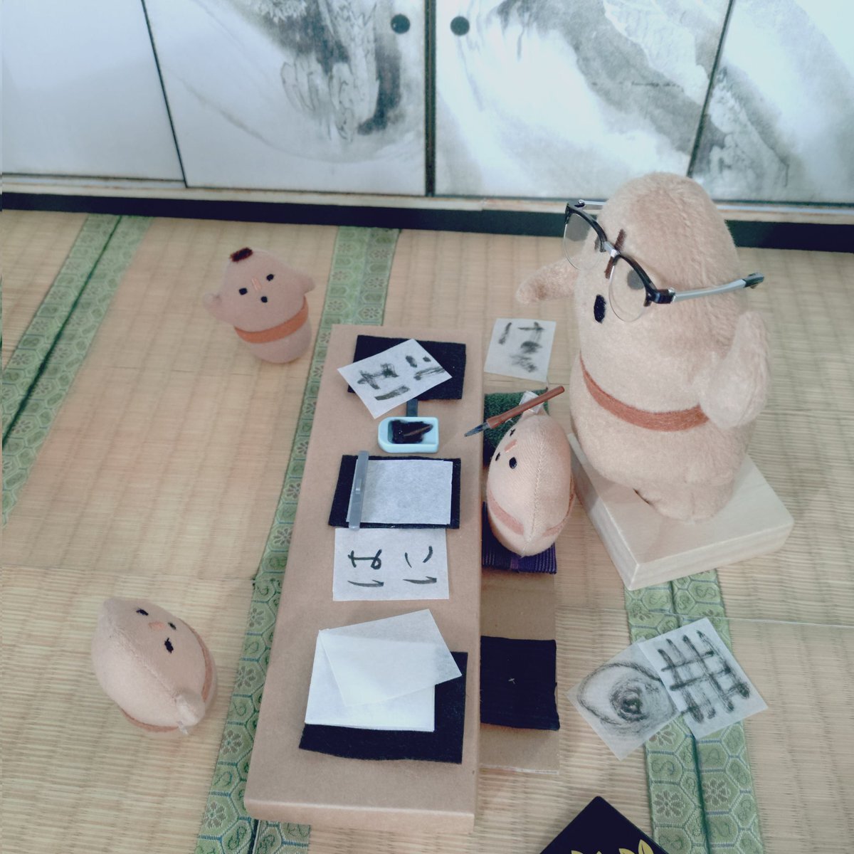 はい。 たてたて。 よこよこ。 はい。 ちからば抜いて〜 思いっきり書いてみんしゃい。 今日は書道の日・習字の日 閉店🌛 #はにてん #九州国立博物館ミュージアムショップ #書道の日・習字の日 #11月2日 #いいもじ pic.x.com/Q2ycpntXx2