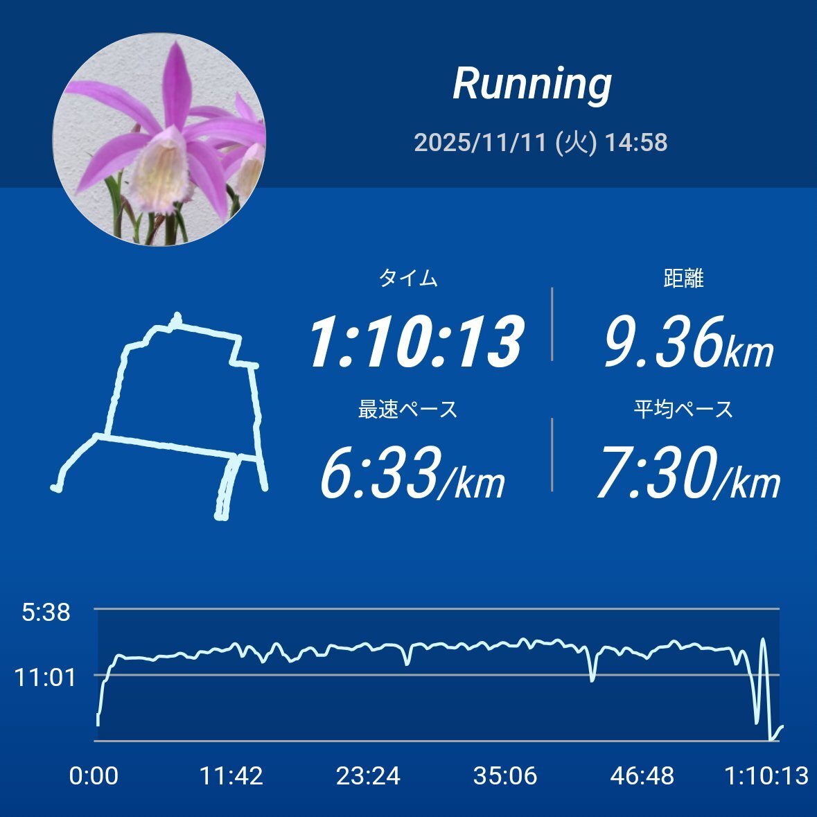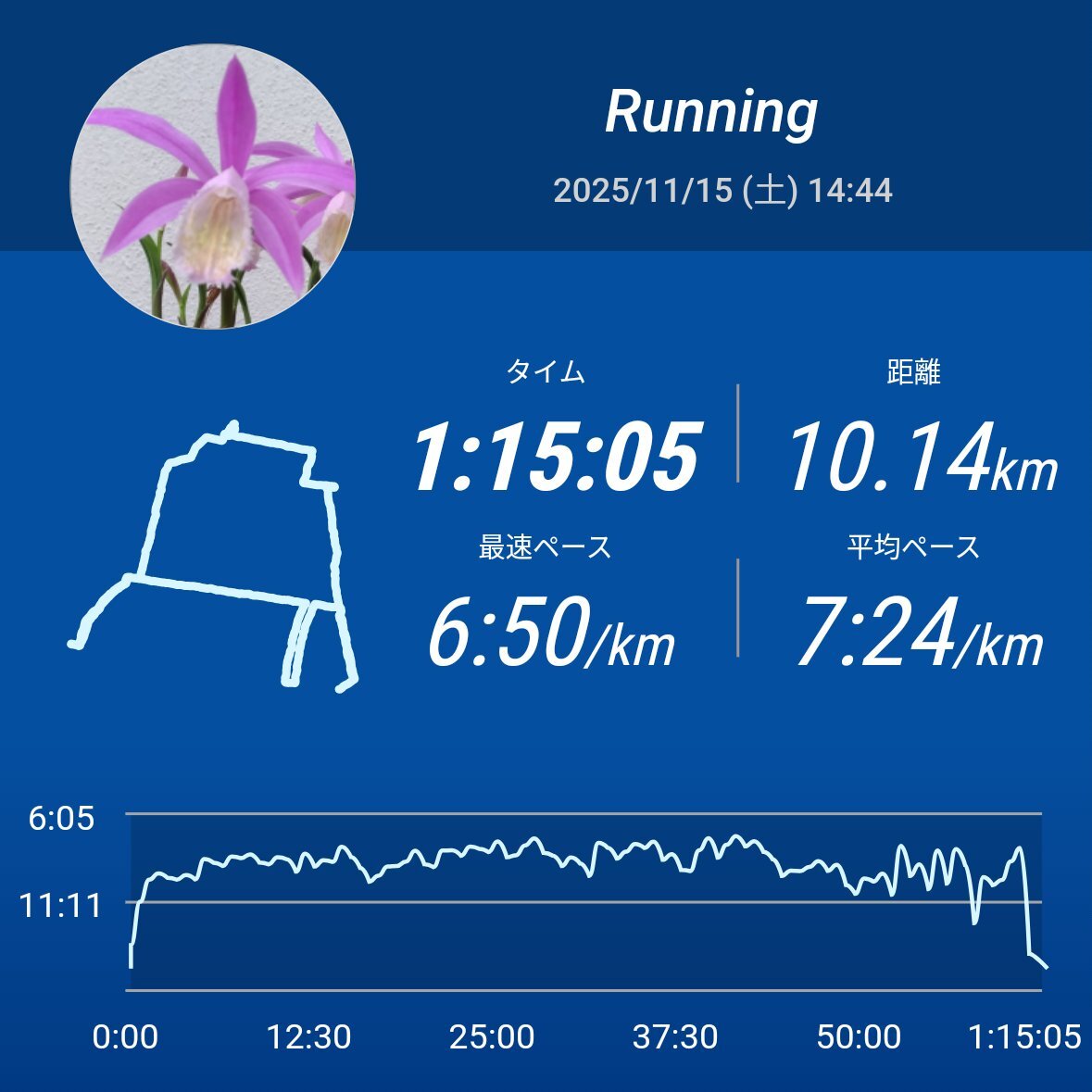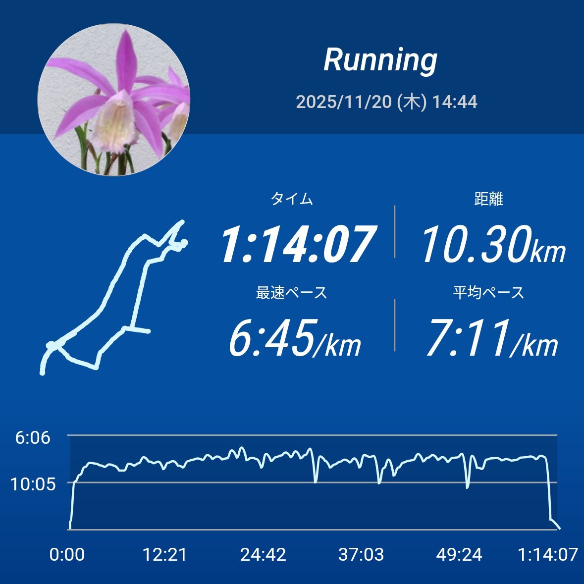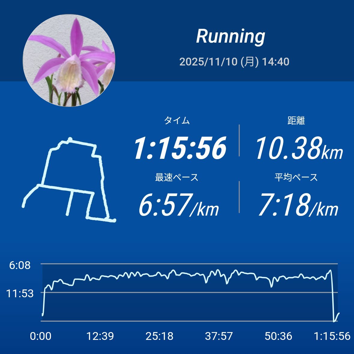 2025/11/25 (火) 15:07のアクティビティ 曇☁️ 11℃ 微風 2日間ランオフ😔走りやすい天気10.5キロラン🏃💦平均ペースやっと7分切😅このくらい走れれば良いです🙂 #TATTA #山形まるごとマラソン #寒河江さくらんぼマラソン #最上川S_mileマラソン #日本一走るアナウンサー pic.x.com/MmN8Ayhakk