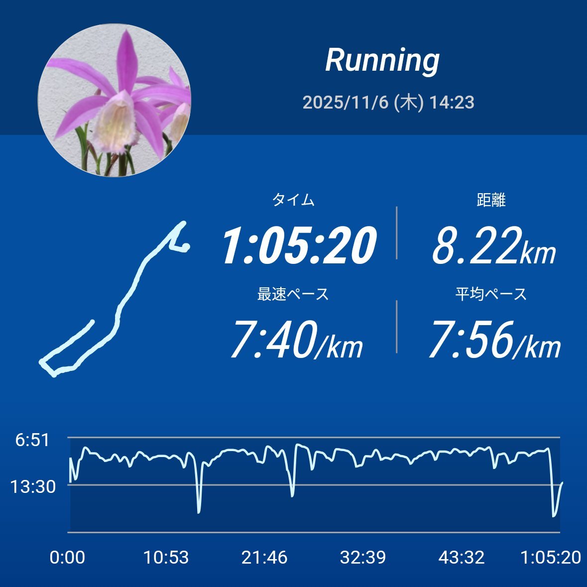 2025/11/16 (日) 14:29のアクティビティ 晴れ☀️ 14℃ 微風 最初の1キロGPS位置誤動作😣距離が8キロ弱ラン🏃💦平均ペース8分弱位😥疲れがあり駄目でした🥵 #TATTA #山形まるごとマラソン #寒河江さくらんぼマラソン #最上川S_mileマラソン #日本一走るアナウンサー pic.x.com/0C0ecpA8lE