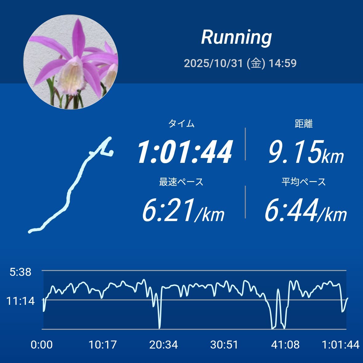 2025/10/31 (金) 14:59のアクティビティ 曇☁️ 12℃ 風無 風が無いぶん寒くはなかったが相変わらず調子がイマイチ😟9キロ🏃💦やっと🥵 #TATTA #山形まるごとマラソン #寒河江さくらんぼマラソン #最上川S_mileマラソン #日本一走るアナウンサー pic.x.com/HgzCu2r0lz