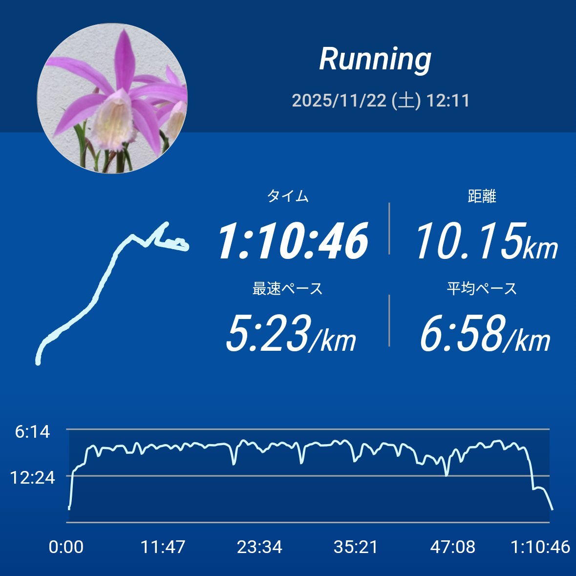 2025/11/22 (土) 12:11のアクティビティ 晴れ☀️ 12℃ 風有 昨日ランオフウォーキング6キロ🚶今日は晴の中10キロ🏃💦平均ペース7分切れて良かった😅 #TATTA #山形まるごとマラソン #寒河江さくらんぼマラソン #最上川S_mileマラソン #日本一走るアナウンサー pic.x.com/JZlh7wGwQe