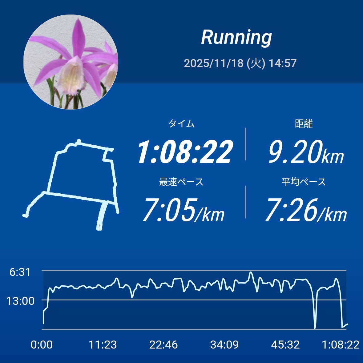 2025/11/8 (土) 14:29のアクティビティ 曇🌥️☁️ 11℃ 風有 気温からするとそんなに寒くなかった🙂今日もやっとの9キロラン🏃💦 #TATTA #山形まるごとマラソン #寒河江さくらんぼマラソン #最上川S_mileマラソン #日本一走るアナウンサー pic.x.com/hvFKGn7wQt