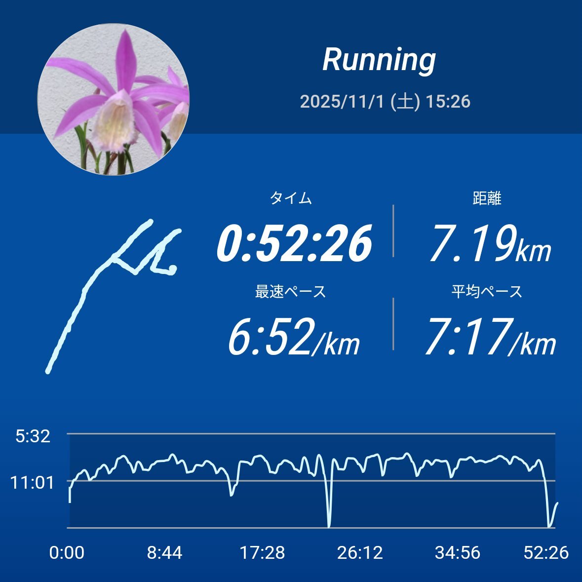 2025/11/1 (土) 15:26のアクティビティ 曇☁️小雨 16℃ 弱風 今日も調子が良くなく7キロラン🏃💦ペースもほぼ7分オーバー🥵 #TATTA #山形まるごとマラソン #寒河江さくらんぼマラソン #最上川S_mileマラソン #日本一走るアナウンサー pic.x.com/d1UVT3Lhys