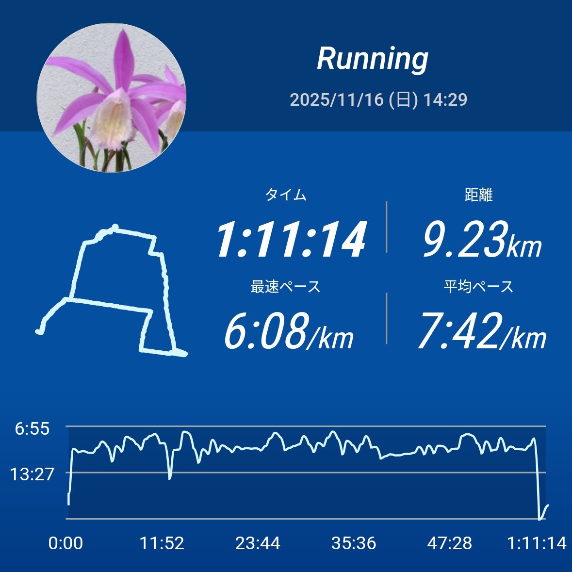 2025/11/12 (水) 14:48のアクティビティ 晴☀️ 13℃ 弱風 良い天気の中9.5キロラン🏃💦平均ペース7分前半でまずまず😅もう少し走れれば良かったけど疲れた🥵 #TATTA #山形まるごとマラソン #寒河江さくらんぼマラソン #最上川S_mileマラソン #日本一走るアナウンサー pic.x.com/Z9yJOsoSaI