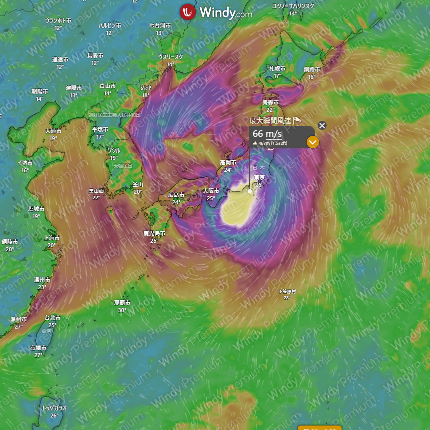 今月28日の台風の予想位置。伊豆半島では最大瞬間風速66メートルの予想だ。やばくね?小笠原から近畿に向かってそのあと太平洋沿岸を北上、大変だぞ! #台風 #最大瞬間風速 #最強台風 pic.x.com/RfTZ7CYQ1p
