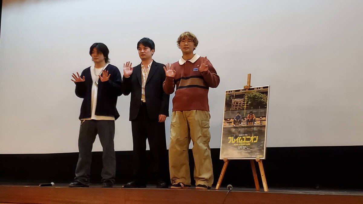 昨日11/1(土)『#フレイムユニオン #最強殺し屋伝説国岡[私闘編]』🔥 #松本卓也 さん、#伊能昌幸 さん、#阪元裕吾 監督 、『グリーンバレット』以来3年ぶり舞台挨拶ありがとうございました✨ 今回とてもハードスケジュールの中、駆けつけていただきました😭 pic.x.com/GzpItnOoZs