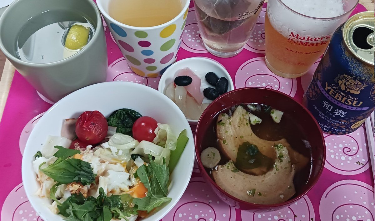 レモン白湯 とうもろこし茶 岩下の新生姜ピリ辛らっきょう #最後にひとつだけお願いしてもよろしいでしょうか 見ながら pic.x.com/qjhs5LWSpm