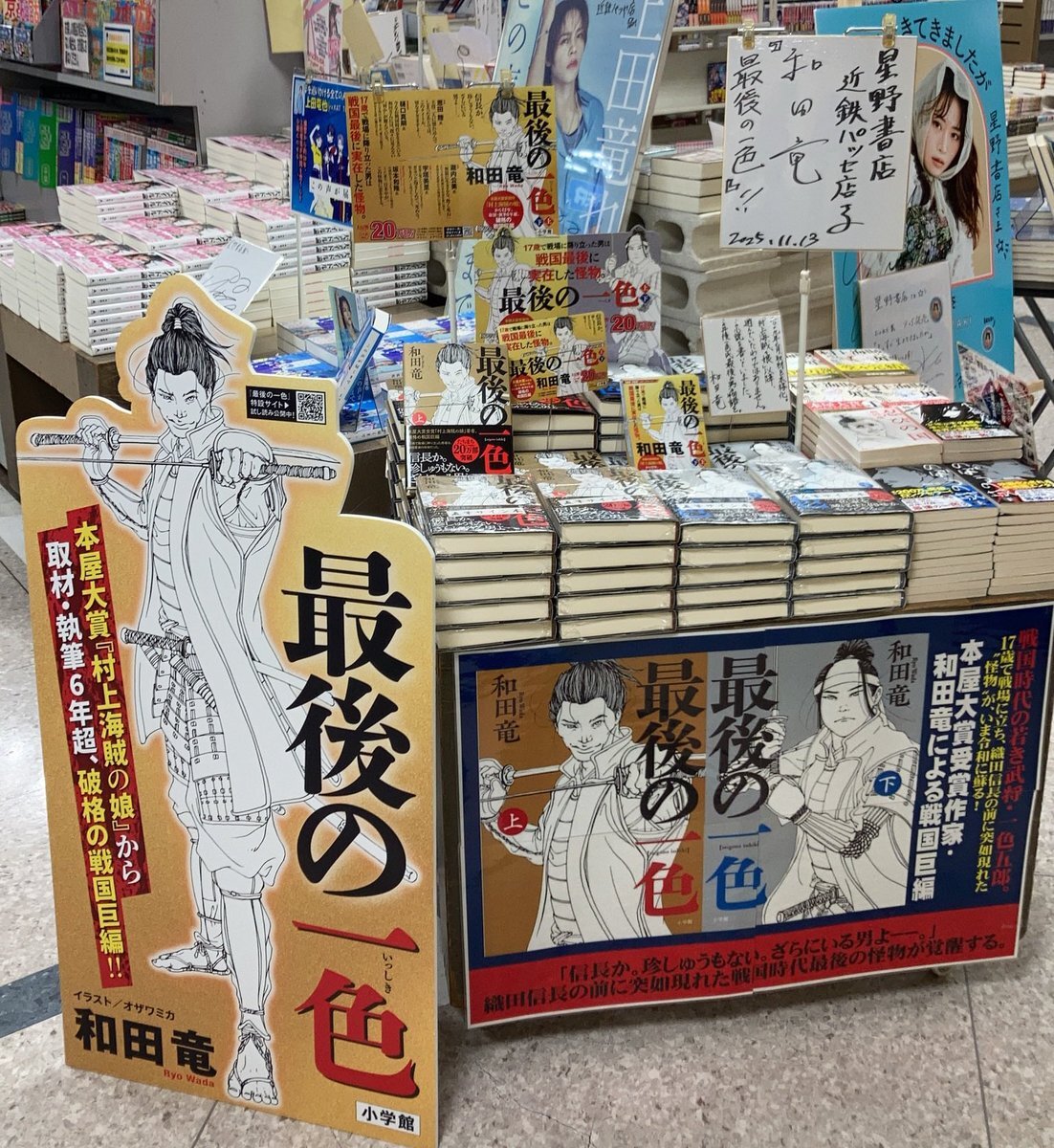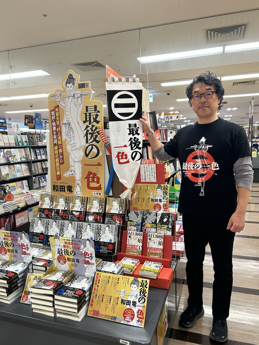 【文芸】 🎊#和田竜 さんにご来店いただきました🎊   12年ぶり(❗️)の新刊は、 戦国エンタテインメント⚔️ 熱い時代にこんなにも熱い人たちが!! ページを捲る手が止まらない〜📕 秋の夜長、覚悟してお読みください😊 『#最後の一色#小学館)』 時代・歴史小説コーナーにて展開中‼️ pic.x.com/1XldGa9JX2