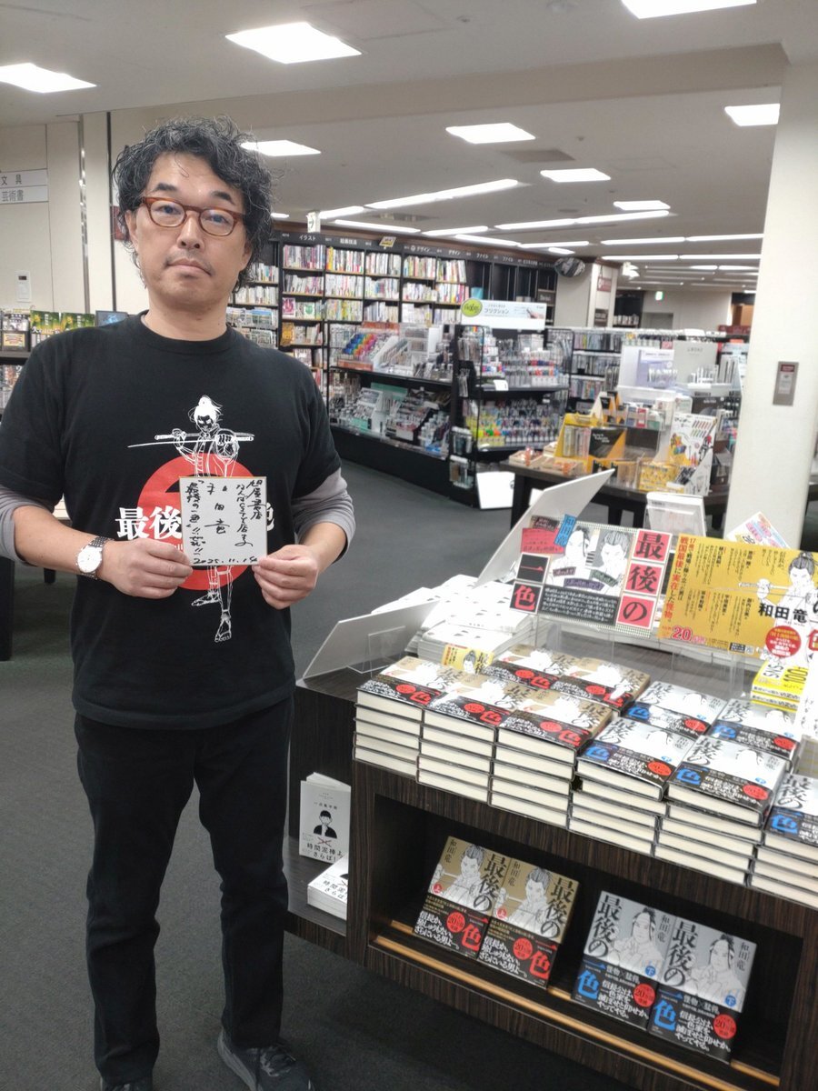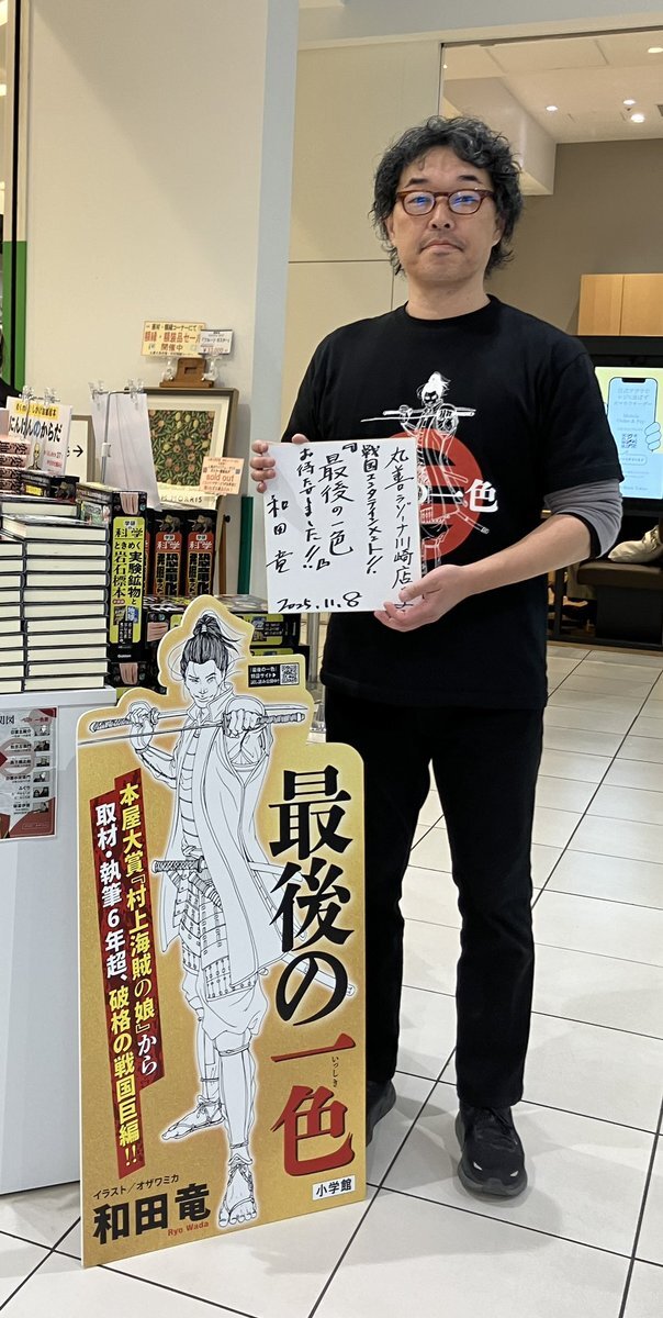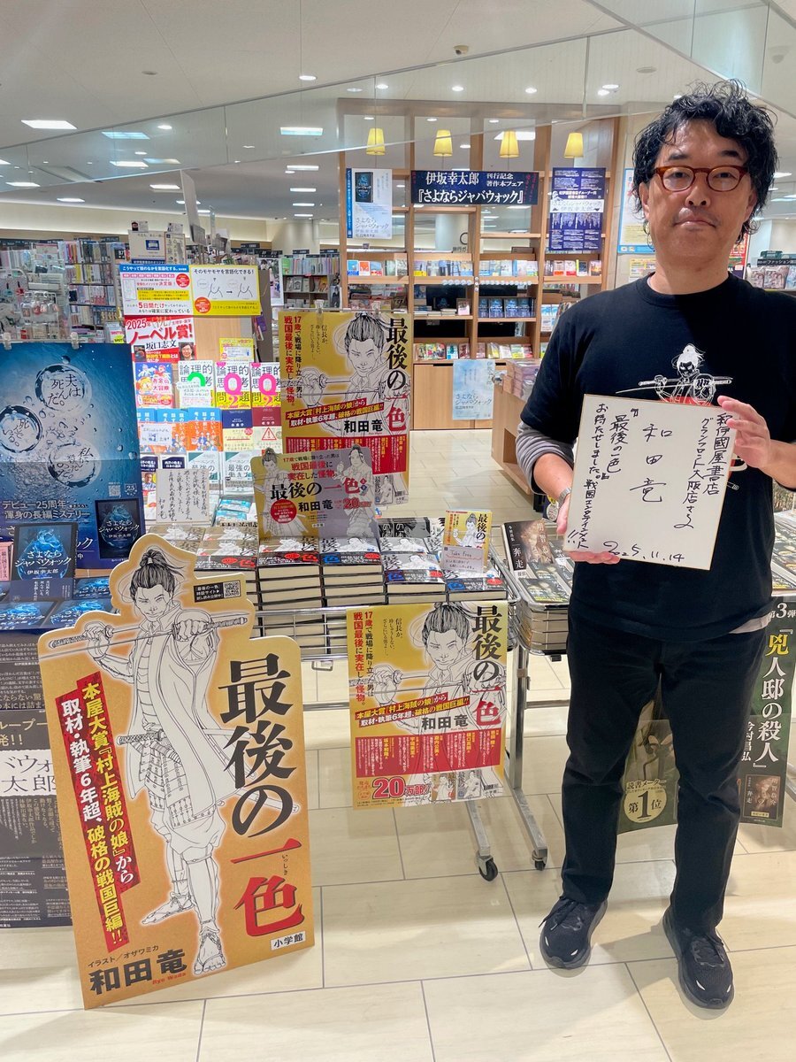 【1F文芸書棚、3F文芸書売場、3F文庫売場】 本日!#和田竜 さんがご来店くださいました!!『#最後の一色 上・下』(#小学館)とその他既刊のサイン本を作っていただきました!数量限定、お取り置き、代引きはご遠慮くださいませ。和田竜さんお忙しい中ご来店ありがとうございました! pic.x.com/2eoNjHLqkd