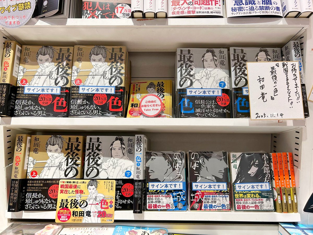 【著者ご来店】 本日、『#最後の一色 上・下 』(#小学館)を発売された #和田竜 先生にご来店いただきました!! 『最後の一色上・下』のほか、『#のぼうの城 上・下』、『#忍びの国』など既刊本にもサインを頂きました!和田先生ありがとうございます! ※取置不可・代引き不可・店頭販売のみです pic.x.com/mcGSHlrVnw