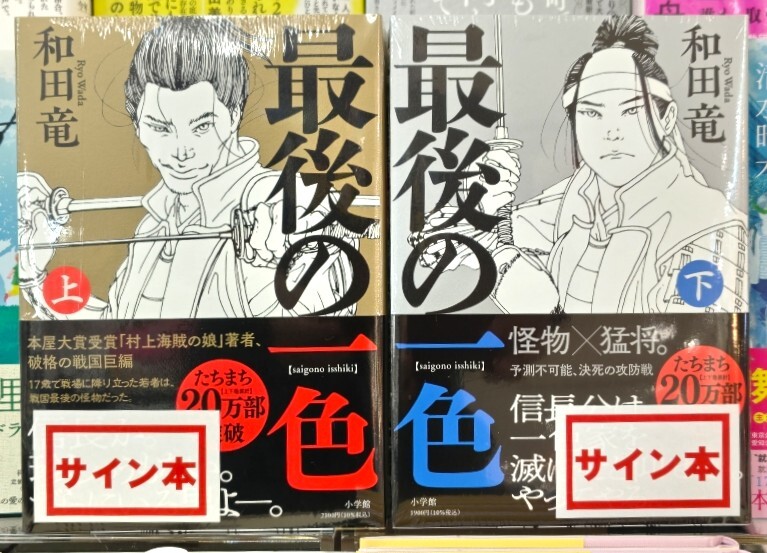 【サイン本のご案内」 #和田竜 さんの超話題作 「#最後の一色(上・下)」 #サイン本 が入荷いたしました! 数量限定先着順です。 取置きなどの問い合わせはお電話で。 ☎03-5698-8811 #小学館 pic.x.com/F3sk7TdUGm