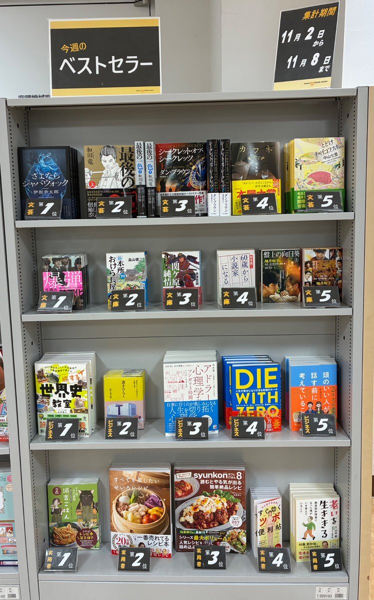 / 📢11/9発表! 週間売上ベスト! \ 集計期間:11/2〜11/8 #和田竜 さん渾身の戦国巨編『#最後の一色』上下巻など文芸書は話題の新刊が続々ランクイン! #八重洲ブックセンター #京急百貨店 #上大岡 #売上ベスト #週間ベスト e-honMy書店→bit.ly/2CTQlIG pic.x.com/Vxy95tSe3j