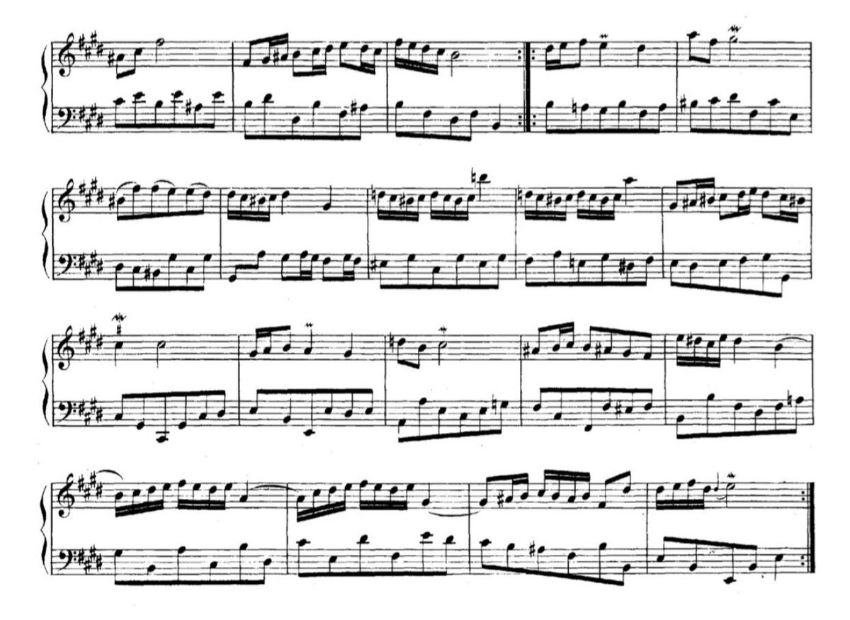 #最後の1ページクイズ 】 第888回/2025年11月10日 ヨハン=ゼバスティアン=バッハ: フランス組曲(独語:Französische Suiten)より第6番ホ長調BWV817 より第5楽章「ポロネーズ」 (1725年頃) バッハのポロネーズです。第6番はフランス組曲の中でも規模が大きく、曲想が明朗であるとされます。 x.com/kurosagi8713/s…