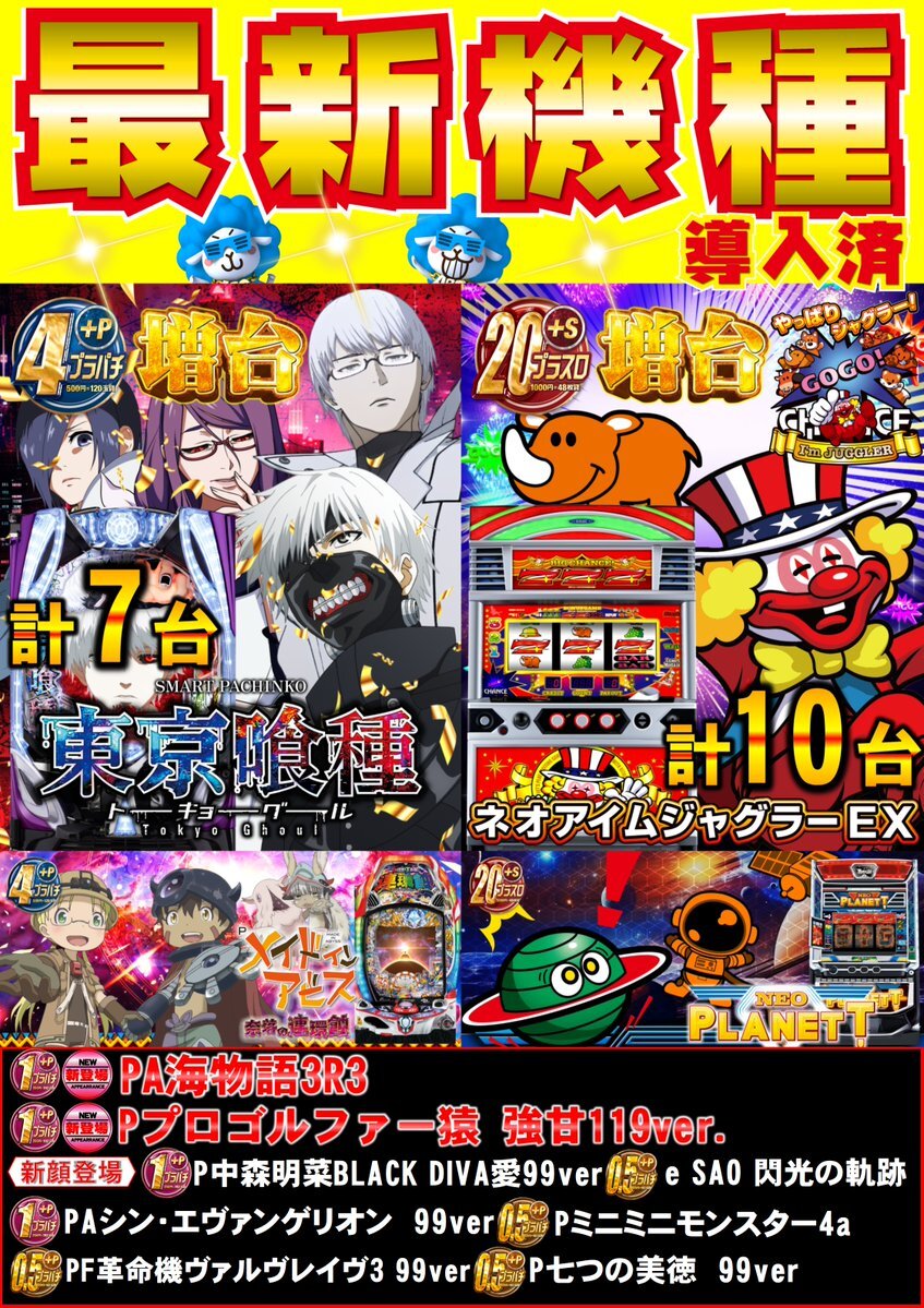 1⃣1⃣月1⃣2⃣日 🔥#オススメ機種 アリマス🔥 ✅Pエヴァ15 ✅P:S東京喰種 ✅Lモンキーターン ✅ジャグラーシリーズ ✅大海物語アグネスラム〔1P〕 取材も来店もない、そんな日こそ 上阿原で楽しんでいきましょう!! #最新機種 導入済み! pic.x.com/ZwilCf10ua