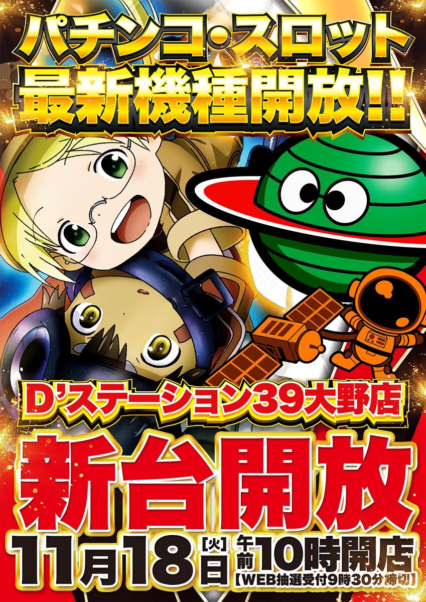 11月18日(火) おはようございます! ◇◆◇◆◇◆◇ 新台開放 ◇◆◇◆◇◆◇ 午前10時開店‼ WEB抽選参加9時30分締切‼ 開放機種 Pメイドインアビス 奈落の連環蝕 p-town.dmm.com/machines/4882#… スマスロネオプラネット p-town.dmm.com/machines/4873#… 皆様のご来店お待ちしております。 #最新機種 pic.x.com/9zeghEwKqd