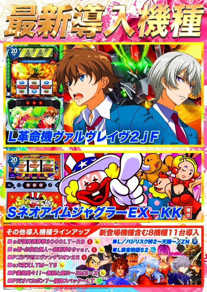 おはようございます😉 ボクです🍙 🎉新台入替2日目🎉 🎰最新機種導入済🎰 🚨Lヴァルヴレイヴ2🚨 🚨ネオアイムジャグラー増台🚨 🚨など6機種15台導入🚨 朝からのご来店、 お待ちしております‼️ #新台入替2日目 #最新機種 #ヴァルヴレイヴ2 #ネオアイムジャグラー pic.x.com/PVA3LzskRJ