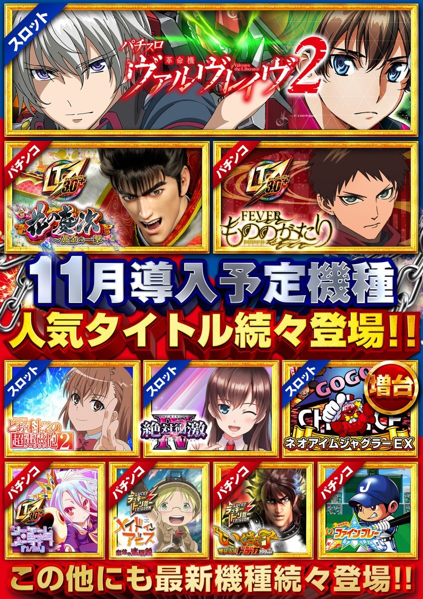 11月12日【水】☀️朝10時開店☀️ ”💃情熱💃💥躍動💥”キング! #最新機種&#人気機種 を楽しむなら 長浜のキングで楽しんじゃって❤️ 💫#L革命機ヴァルヴレイヴ2💫をはじめ 💥地域最大級💥の機種ラインナップ😁 ⬇️㊙️最新情報㊙️はコチラ⬇️ kingkanko-shiga.com/nagahama/ #滋賀 #長浜 #キング観光 #新台入替 pic.x.com/w31FDUkk5o