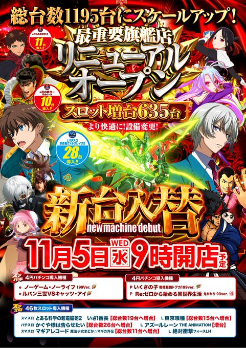 🔥11月17日【月】10時開店🔥 🔥入場抽選は9時40分開始🔥 🟨🟨🟨🟨🟨🟨🟨  イイナ!マルハン! ⚡️賞⚡️品⚡️入⚡️荷⚡️ 🟨🟨🟨🟨🟨🟨🟨 ✅e東京喰種オススメ26台設置 🎯EXIT店長Xを要チェック (@2WMYXDDMDlXX2Ur) 明日のご来店も 心よりお待ちしております😊 #マルハン川越店 #最重要旗艦店 pic.x.com/Fvczv2AFMl x.com/2WMYXDDMDlXX2U…
