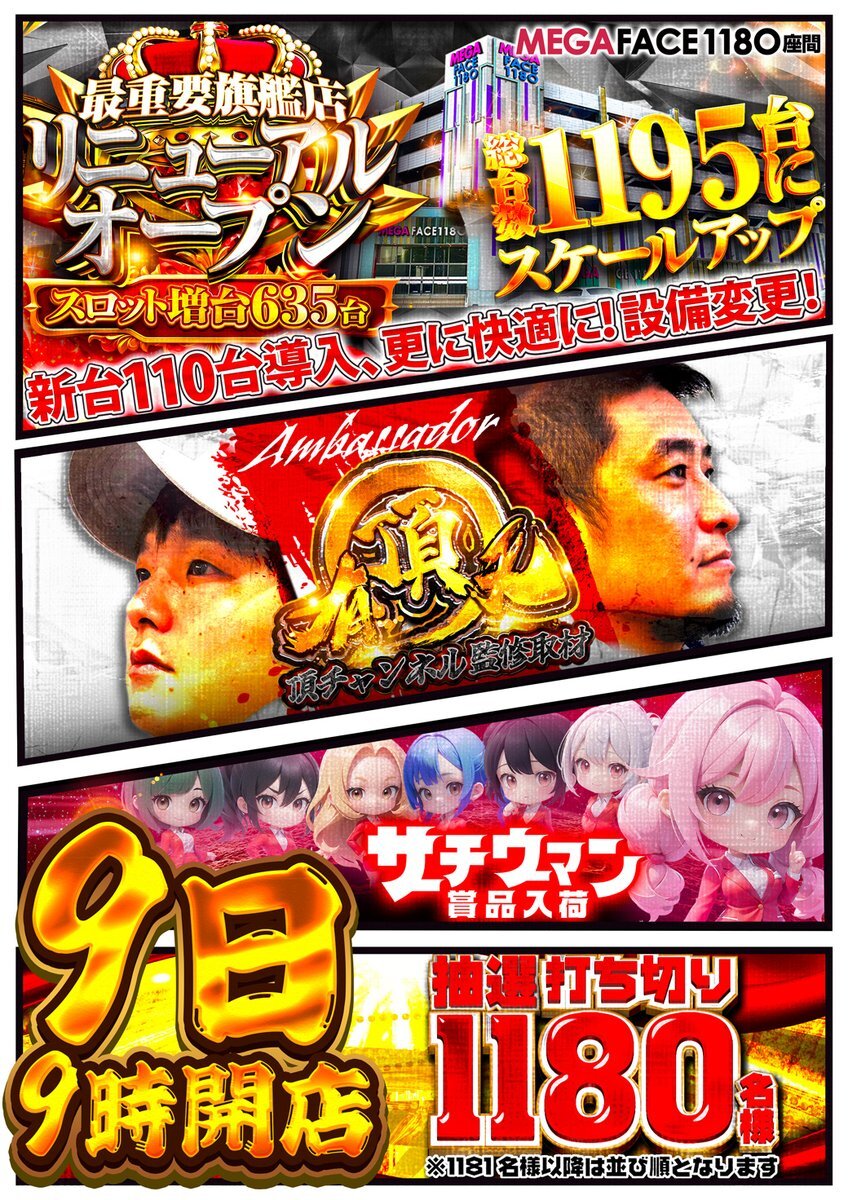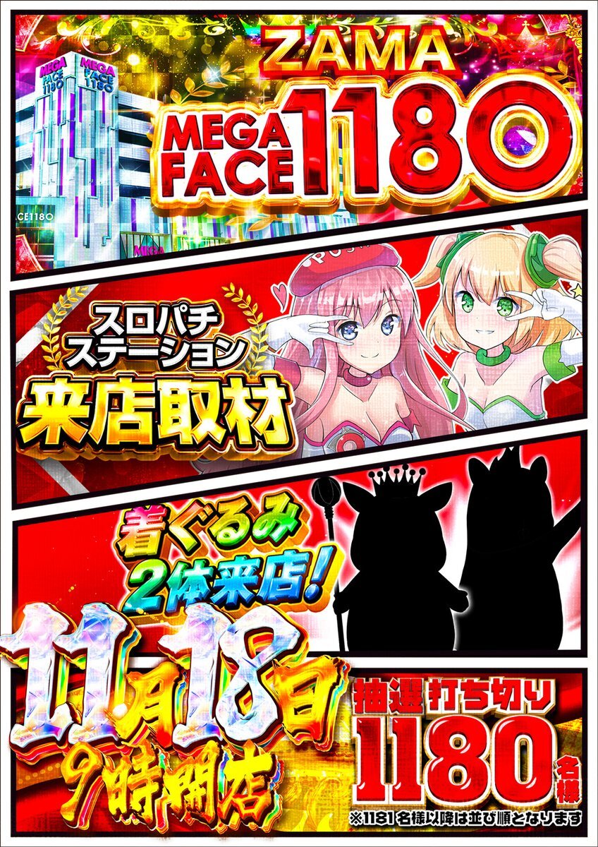 おはようございます🐯ファン感謝デー🔥  ⚠️⚠️⚠️#最重要旗艦店⚠️⚠️⚠️  🔥🌈11月にリニューアル済🌈🔥 🔥#スロット635台へスケールアップ🔥 メガフェイス1180座間が “5つの進化” 。 🌈①⑥日🌈日曜日のご案内📣    🎰#橘リノ さん完全監修🎰 🎈🎈#超りみっとぶれいく取材🎈🎈 pic.x.com/HgKogQcdvE x.com/megafacezamate…