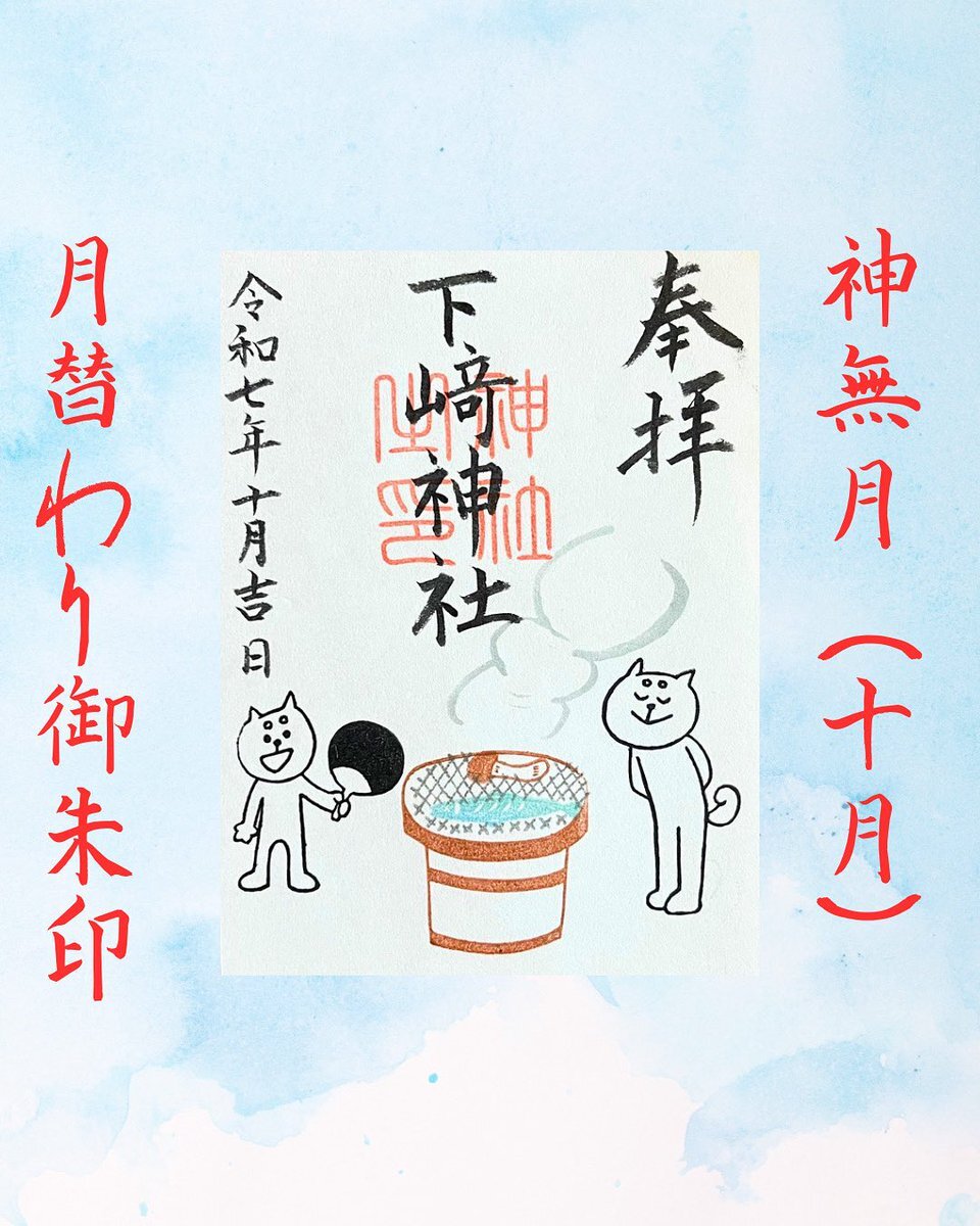 【月替わり御朱印】 10月の月替わり御朱印は秋の味覚です🍁 頒布期間:10月1日〜31日 初穂料:300円 直書き、書き置き両対応いたします🖌️ #御朱印 #月替わり御朱印 #秋 pic.x.com/DhTKcqjeNx