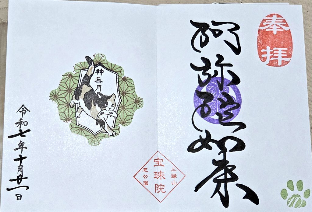 10月21日 #芝公園周辺で御朱印巡り その③ #宝珠院 実はこちらの #月替わり御朱印 の #10月限定 #三毛猫 御朱印をInstagramで見たのが今日のお出かけのきっかけでした😆 pic.x.com/H2vFqNFacU
