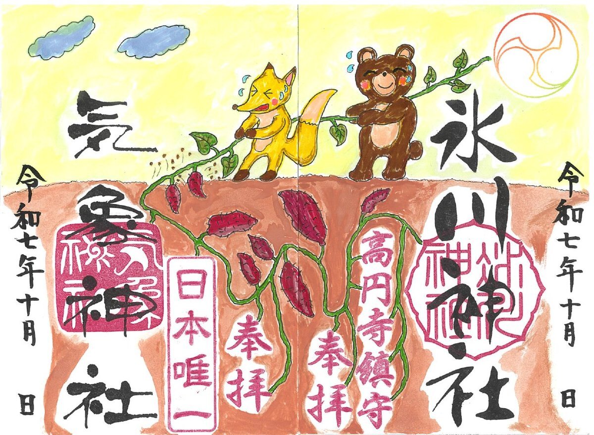 ◆令和7年10月の御朱印◆ 令和7年10月1日授与開始 ≪氷川神社≫ ・秋の空の三つ巴 ・芋ほりをするクマさん ≪気象神社≫ ・鮮やかな秋空 ・大収穫のさつまいも koenji-hikawa.com/topics/%e4%bb%… #高円寺氷川神社 #気象神社 #月替わり御朱印 pic.x.com/wJ7hZePiBN