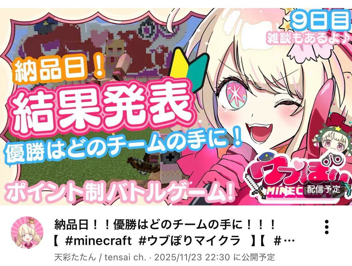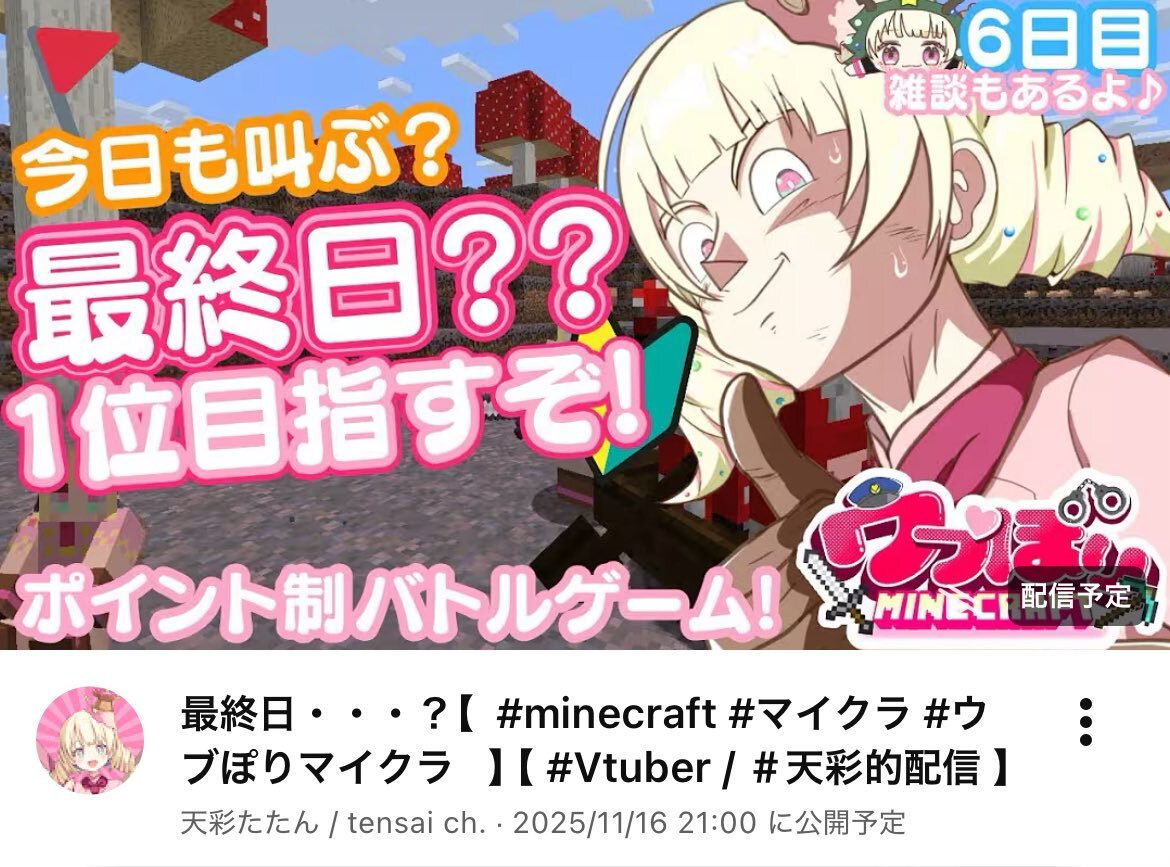 11月20日 #ぶいのこスケジュール 更新 21時 #天彩たたん ファンボ特典配信 21時30分 天彩たたん ゲーム配信「ウブほりマイクラ」 23時 #月歌ぐりむ 雑談 時間未定 #雪鈴ましろ 誕生日グッズの話など雑談 連絡を待って楽しく過ごしましょう