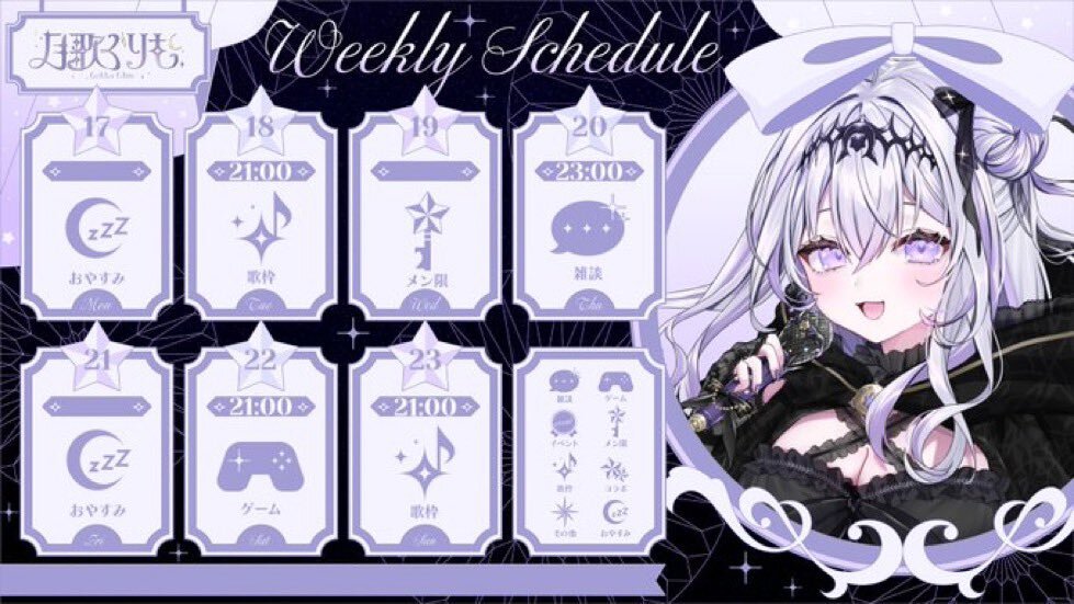11月18日 #ぶいのこスケジュール 21時 #月歌ぐりむ 歌枠 #雪鈴ましろ 休みの予定ですが配信出来たら24時頃雑談(可能性薄い) #天彩たたん 配信お休み となっております。 本日も応援して過ごしましょう。
