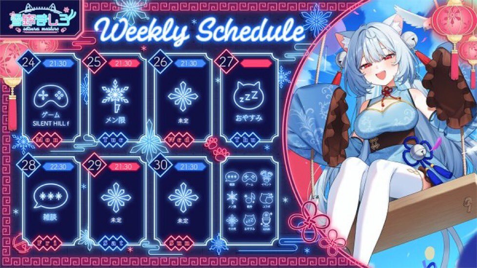 11月9日 #ぶいのこスケジュール 19時 #天彩たたん ゲーム配信「マイクラ」 21時 #月歌ぐりむ 歌枠 #雪鈴ましろ は体調など次第になります。 本日も無理せず、休みながら、配信や、アーカイブを楽しみましょう
