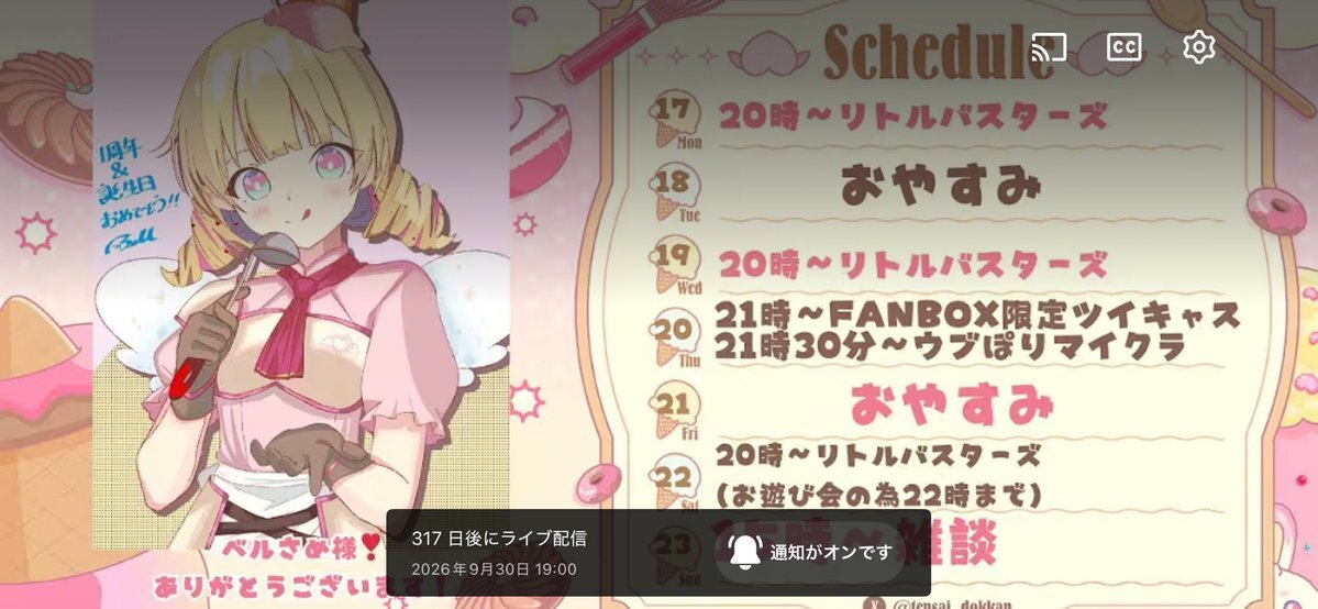 11月22日 #ぶいのこスケジュール 20時〜22時 #天彩たたん ゲーム配信「リトルバスターズ」 21時 #月歌ぐりむ ゲーム配信 21時 #雪鈴ましろ 生誕祭 21時30分歌みた投稿 の予定です。 生誕祭はお祝いの言葉を送りましょう